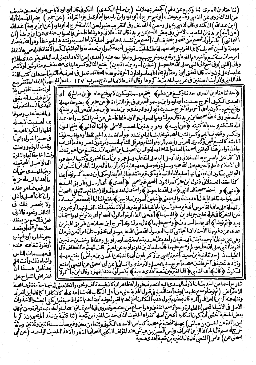 (حَدَّثَنَا هَنَّادُ بْنُ السَّرِيِّ، حَدَّثَنَا وَكِيعٌ عَمَّ دَلْهَمَ) : بِفَتْحِ مُهْمَلَةٍ وَسُكُونِ لَامٍ وَفَتْحِ هَاءٍ. (بْنِ صَالِحٍ) : أَيِ الْعَبْدِيِّ الْكُوفِيِّ، أَخْرَجَ حَدِيثَهُ أَبُو دَاوُدَ وَابْنُ مَاجَهْ وَالْبُخَارِيُّ فِي جُزْءِ الْقِرَاءَةِ. (عَنْ حُجَيْرٍ) : بِضَمِّ حَاءٍ مُهْمَلَةٍ وَفَتْحِ جِيمٍ وَسُكُونِ يَاءٍ فِي آخِرِهِ رَاءٍ، أَخْرَجَ حَدِيثَهُ أَبُو دَاوُدَ وَالتِّرْمِذِيُّ وَابْنُ مَاجَهْ. (بْنِ عَبْدِ اللَّهِ عَنْ أَبِي بُرَيْدَةَ) : بِالتَّصْغِيرِ، وَفِي نُسْخَةٍ صَحِيحَةٍ ابْنُ بُرَيْدَةَ، قَالَ مِيرَكُ: وَهُوَ الصَّوَابُ وَالْأَوَّلُ غَلَطٌ فَاحِشٌ عَنْ نُسَخِ الْكِتَابِ وَاسْمُهُ عَبْدُ اللَّهِ. قُلْتُ: قَدْ يُوَجِّهُ بِأَنَّهُ كُنْيَتُهُ. (عَنْ أَبِيهِ) : وَهُوَ بِرَيْدَةُ بْنُ الْحُصَيْبِ الْأَسْلَمِيُّ. (أَنَّ النَّجَاشِيَّ) : بِفَتْحِ النُّونِ وَتُكْسَرُ وَتَخْفِيفِ الْجِيمِ وَكَسْرِ الشِّينِ الْمُعْجَمَةِ وَتَخْفِيفِ الْيَاءِ وَتُشَدَّدُ، وَأَمَّا تَشْدِيدُ الْجِيمِ فَخَطَأٌ. وَهُوَ لَقَبُ مُلُوكِ الْحَبَشَةِ كَالتُّبَّعِ لِلْيَمَنِ، وَكِسْرَى لِلْفُرْسِ، وَقَيْصَرَ لِلرُّومِ وَالشَّامِ، وَهِرَقْلَ لِلشَّأْمِ فَحَسْبُ، وَفِرْعَوْنُ لِمِصْرَ. وَهَذِهِ أَلْقَابٌ جَاهِلِيَّةٌ، وَاسْمُ هَذَا النَّجَاشِيِّ أَصْحَمَةُ، بِالصَّادِّ وَالْحَاءِ الْمُهْمَلَةِ، وَالسِّينُ تَصْحِيفُ ابْنِ حَجَرٍ، مَاتَ سَنَةَ تِسْعٍ مِنَ الْهِجْرَةِ عِنْدَ الْأَكْثَرِ عَلَى مَا صَرَّحَ بِهِ الْعَسْقَلَانِيُّ، وَقَدْ أَرْسَلَ إِلَيْهِ رَسُولُ اللَّهِ صَلَّى اللَّهُ عَلَيْهِ وَسَلَّمَ عَمْرَو بْنَ أُمَيَّةَ الضَّمْرِيَّ، وَكُتُبَ إِلَيْهِ يَدْعُوهُ إِلَى الْإِسْلَامِ، فَأَسْلَمَ فَأَخْبَرَهُمْ صَلَّى اللَّهُ عَلَيْهِ وَسَلَّمَ بِمَوْتِهِ، وَصَلَّى مَعَهُمْ عَلَيْهِ وَكَبَّرَ أَرْبَعًا، قَالَ مِيرَكُ: أَفَادَ ابْنُ التِّينِ أَنَّ النَّجَاشِيَ بِسُكُونِ الْيَاءِ يَعْنِي أَنَّهَا أَصْلِيَّةٌ لَا يَاءُ النِّسْبَةِ. وَحَكَى غَيْرُهُ تَشْدِيدَ الْيَاءِ أَيْضًا، وَحَكَى ابْنُ دِحْيَةَ كَسْرَ نُونِهِ أَيْضًا كَذَا حَقَّقَهُ الْعَسْقَلَانِيُّ، فَقَوْلُ ابْنِ حَجَرٍ كَسْرُ النُّونِ أَفْصَحُ غَيْرُ صَحِيحٍ. (أَهْدَى) : أَيْ أَرْسَلَ بِطَرِيقِ الْهَدِيَّةِ. (لِلنَّبِيِّ) : وَفِي نُسْخَةٍ صَحِيحَةٍ «إِلَى النَّبِيِّ» . (صَلَّى اللَّهُ عَلَيْهِ وَسَلَّمَ) : وَاسْتِعْمَالُ أَهْدَى بِإِلَى وَاللَّامِ شَائِعٌ سَائِغٌ، فَفِي الصِّحَاحِ: الْهَدِيَّةُ وَاحِدَةُ الْهَدَايَا، يُقَالُ أَهْدَيْتُ لَهُ وَإِلَيْهِ بِمَعْنًى. (خُفَّيْنِ أَسْوَدَيْنِ سَاذَجَيْنِ) : بِفَتْحِ الذَّالِ الْمُعْجَمَةِ، مُعَرَّبُ سَادَةٍ، بِالْمُهْمَلَةِ عَلَى مَا فِي الْقَامُوسِ، أَيْ غَيْرِ مَنْقُوشَيْنِ إِمَّا بِالْخِيَاطَةِ أَوْ بِغَيْرِهَا، أَوْ شِيةَ فِيهِمَا تُخَالِفُ لَوْنَهُمَا، أَوْ مُجَرَّدَيْنِ عَنِ الشَّعْرِ، كَمَا فِي قَوْلِهِ نَعْلَيْنِ جَرْدَاوَيْنِ. (فَلَبِسَهُمَا) : أَيْ عَلَى الطَّهَارَةِ، وَأَمَّا قَوْلُ الْعِصَامِ أَيْ بِلَا تَرَاخٍ، فَهُوَ احْتِمَالٌ بَعِيدٌ. (ثُمَّ تَوَضَّأَ) : أَيْ بَعْدَ مَا أَحْدَثَ. (وَمَسَحَ عَلَيْهِمَا) : قَالَ مِيرَكُ: وَقَدْ أَخْرَجَ