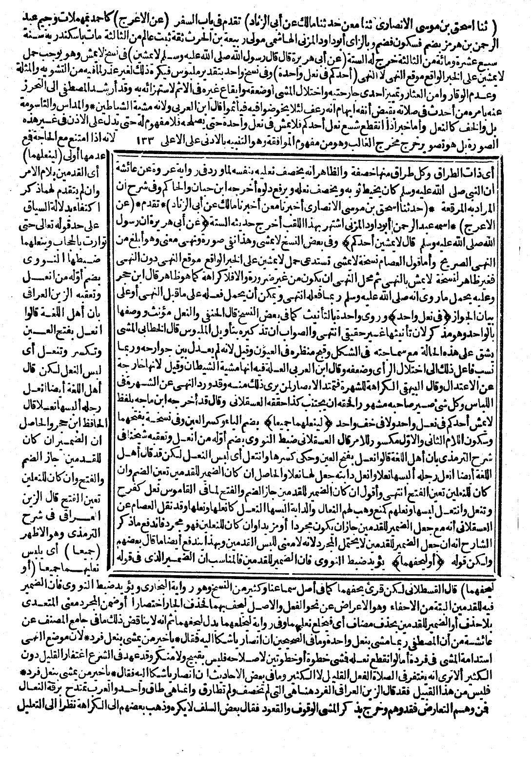 (حَدَّثَنَا إِسْحَاقُ بْنُ مُوسَى الْأَنْصَارِيُّ، أَخْبَرَنَا مَعْنٌ، أَخْبَرَنَا مَالِكٌ، عَنْ أَبِي الزِّنَادِ) تَقَدَّمَ (عَنِ الْأَعْرَجِ) اسْمُهُ عَبْدُ الرَّحْمَنِ أَبُو دَاوُدَ الْمُزَنِيُّ اشْتُهِرَ بِهَذَا اللَّقَبِ أَخْرَجَ حَدِيثَهُ السِّتَّةُ (عَنْ أَبِي هُرَيْرَةَ أَنَّ رَسُولَ اللَّهِ صَلَّى اللَّهُ عَلَيْهِ وَسَلَّمَ قَالَ: لَا يَمْشِيَنَّ أَحَدُكُمْ) وَفِي بَعْضِ النُّسَخِ لَا يَمْشِي، وَهَذَا نَفْيٌ صُورَةً وَنَهْيٌ مَعْنًى، وَهُوَ أَبْلَغُ مِنَ النَّهْيِ الصَّرِيحِ، وَأَمَّا قَوْلُ الْعِصَامِ نُسْخَةُ لَا يَمْشِي، تَسْتَدْعِي حَمْلَ لَا يَمْشِيَنَّ عَلَى الْخَبَرِ الْوَاقِعِ مَوْقِعَ النَّهْيِ، دُونَ النَّهْيِ فَغَيْرُ ظَاهِرٍ، لِنُسْخَةِ لَا يَمْشِي بِالنَّهْيِ، ثُمَّ مَحَلُّ النَّهْيِ أَنْ يَكُونَ مِنْ غَيْرِ ضَرُورَةٍ، وَإِلَّا فَلَا كَرَاهَةَ كَمَا هُوَ ظَاهِرٌ، قَالَ ابْنُ حَجَرٍ: وَعَلَيْهِ يُحْمَلُ مَا رُوِيَ أَنَّهُ صَلَّى اللَّهُ عَلَيْهِ وَسَلَّمَ رُبَّمَا فَعَلَهُ، انْتَهَى، وَيُمْكِنُ أَنْ يُحْمَلَ فِعْلُهُ عَلَى مَا قَبْلَ النَّهْيِ أَوْ عَلَى بَيَانِ الْجَوَازِ (فِي نَعْلٍ وَاحِدٍ) وَرُوِيَ وَاحِدَةٌ بِالتَّأْنِيثِ، كَمَا فِي بَعْضِ النُّسَخِ، قَالَ الْحَنَفِيُّ: وَالنَّعْلُ مُؤَنَّثٌ وَوَصْفُهَا بِالْوَاحِدِ، وَهُوَ مُذَكَّرٌ ; لِأَنَّ تَأْنِيثَهَا غَيْرُ حَقِيقِيٍّ، انْتَهَى، وَالصَّوَابُ أَنَّ تَذْكِيرَهُ بِتَأْوِيلِ الْمَلْبُوسِ، قَالَ الْخَطَّابِيُّ: الْمَشْيُ يَشُقُّ عَلَى هَذِهِ الْحَالَةِ، مَعَ سَمَاجَتِهِ فِي الشَّكْلِ، وَقُبْحِ مَنْظَرِهِ فِي الْعُيُونِ، وَقِيلَ: لِأَنَّهُ لَمْ يَعْدِلْ بَيْنَ جَوَارِحِهِ، وَرُبَّمَا نُسِبَ فَاعِلُ ذَلِكَ إِلَى اخْتِلَالِ الرَّأْيِ وَضَعْفِهِ، وَقَالَ ابْنُ الْعَرَبِيِّ: الْعِلَّةُ فِيهِ أَنَّهَا مِشْيَةُ الشَّيْطَانِ، وَقِيلَ: لِأَنَّهَا خَارِجَةٌ عَنِ الِاعْتِدَالِ، وَقَالَ الْبَيْهَقِيُّ الْكَرَاهَةُ لِلشُّهْرَةِ فَيَمْتَدُّ الْإِبْصَارُ لِمَنْ يُرَى ذَلِكَ مِنْهُ، وَقَدْ وَرَدَ النَّهْيُ عَنِ الشُّهْرَةِ