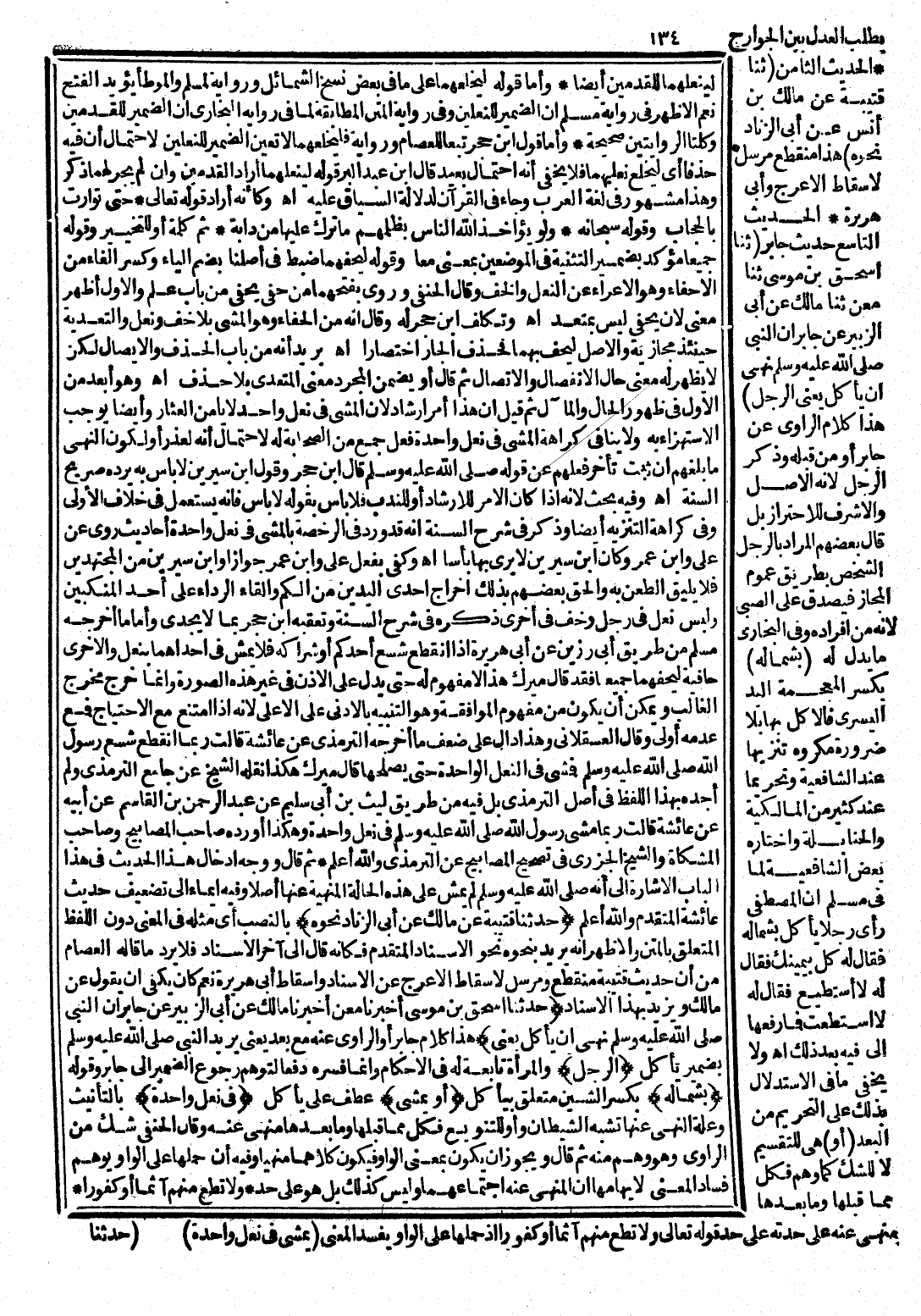 (حَدَّثَنَا قُتَيْبَةُ عَنْ مَالِكٍ عَنْ أَبِي الزِّنَادِ وَنَحْوَهُ) بِالنَّصْبِ أَيْ مِثْلَهُ فِي الْمَعْنَى دُونَ اللَّفْظِ الْمُتَعَلِّقِ بِالْمَتْنِ، وَالْأَظْهَرُ أَنَّهُ يُرِيدُ بِنَحْوِهِ، نَحْوَ الْإِسْنَادِ الْمُتَقَدِّمِ، فَكَأَنَّهُ قَالَ إِلَى آخِرِ الْإِسْنَادِ فَلَا يُرَدُّ مَا قَالَهُ الْعِصَامُ مِنْ أَنَّ حَدِيثَ قُتَيْبَةَ مُنْقَطِعٌ وَمُرْسَلٌ ; لِإِسْقَاطِ الْأَعْرَجِ عَنِ الْإِسْنَادِ وَإِسْنَادِ أَبِي هُرَيْرَةَ، نَعَمْ كَانَ يَكْفِي أَنْ يَقُولَ عَنْ مَالِكٍ وَيَزِيدَ بِهَذَا الْإِسْنَادِ.