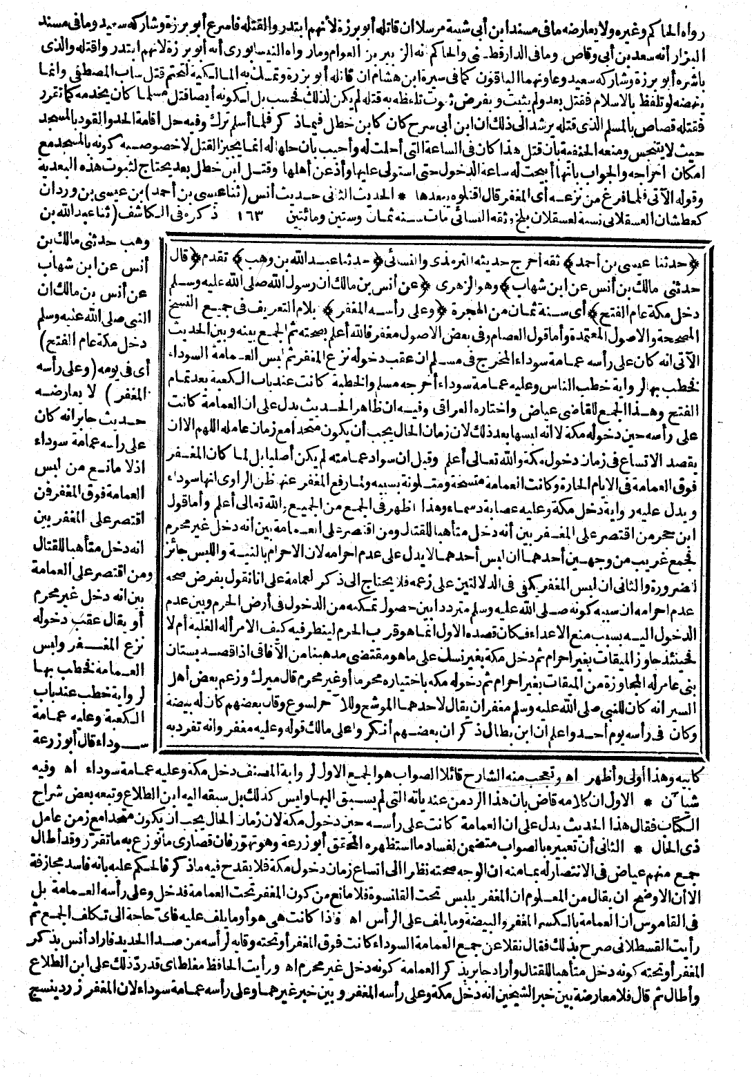 وَأَمَّا قَوْلُ الْعِصَامِ وَفِي بَعْضِ الْأُصُولِ «مِغْفَرٌ» فَاللَّهُ أَعْلَمُ بِصِحَّتِهِ، ثُمَّ الْجَمْعُ بَيْنَهُ وَبَيْنَ الْحَدِيثِ الْآتِي أَنَّهُ كَانَ عَلَى رَأْسِهِ عِمَامَةٌ سَوْدَاءُ - الْمُخَرَّجُ فِي مُسْلِمٍ - أَنَّ عَقِبَ دُخُولِهِ نَزَعَ الْمِغْفَرَ، ثُمَّ لَبِسَ الْعِمَامَةَ السَّوْدَاءَ، فَخَطَبَ بِهَا لِرِوَايَةِ: «خَطَبَ النَّاسَ وَعَلَيْهِ عِمَامَةٌ سَوْدَاءُ» أَخْرَجَهُ مُسْلِمٌ. وَالْخُطْبَةُ كَانَتْ عِنْدَ بَابِ الْكَعْبَةِ بَعْدَ تَمَامِ الْفَتْحِ، وَهَذَا الْجَمْعُ لِلْقَاضِي عِيَاضٍ، وَاخْتَارَهُ الْعِرَاقِيُّ وَفِيهِ أَنَّ ظَاهِرَ الْحَدِيثِ يَدُلُّ عَلَى أَنَّ الْعِمَامَةَ كَانَتْ عَلَى رَأْسِهِ حِينَ دُخُولِهِ مَكَّةَ، لَا أَنَّهُ لَبِسَهَا بَعْدَ ذَلِكَ ; لِأَنَّ زَمَانَ الْحَالِ يَجِبُ أَنْ يَكُونَ مُتَّحِدًا مَعَ زَمَانِ عَامِلِهِ، اللَّهُمَّ إِلَّا أَنْ يُقْصَدَ الِاتِّسَاعُ فِي زَمَانِ دُخُولِ مَكَّةَ وَاللَّهُ أَعْلَمُ.