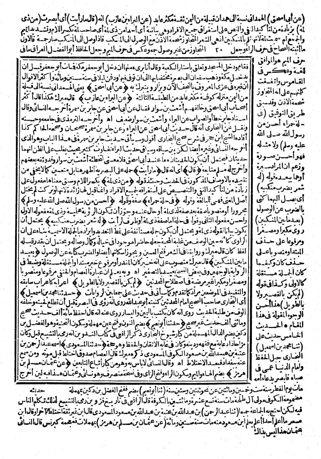 (حَدَّثَنَا مُحَمَّدُ بْنُ إِسْمَاعِيلَ) : أَيِ الْبُخَارِيُّ صَاحِبُ الصَّحِيحِ إِمَامُ الْمُحَدِّثِينَ، كُنْيَتُهُ أَبُو عَبْدِ اللَّهِ رُوِيَ أَنَّهُ رُؤِيَ فِي الْبَصْرَةِ قَبْلَ أَنْ تَطْلُعَ لِحْيَتُهُ وَخَلْفَهُ أُلُوفٌ مِنْ طَلَبَةِ الْحَدِيثِ، وَرَوَى أَنَّهُ كَانَ يَكْتُبُ بِالْيَمِينِ وَالْيَسَارِ، وَرُوِيَ عَنْهُ أَنَّهُ قَالَ: أَحْفَظُ مِائَةَ أَلْفِ حَدِيثٍ صَحِيحٍ وَمِائَتَيْ أَلْفِ حَدِيثٍ غَيْرِ صَحِيحٍ. (حَدَّثَنَا أَبُو نُعَيْمٍ) : بِضَمِّ النُّونِ وَفَتْحِ عَيْنٍ مُهْمَلَةٍ وَسُكُونِ التَّحْتِيَّةِ، وَهُوَ الْفَضْلُ بْنُ دُكَيْنٍ بِضَمِّ الدَّالِ الْمُهْمَلَةِ مِنْ كِبَارِ شُيُوخِ الْبُخَارِيِّ، ذَكَرَ الرَّافِعِيُّ فِي كِتَابِ التَّدْوِينِ أَنَّهُ رُمِيَ بِالتَّشَيُّعِ، قِيلَ وَكَانَ مَزَّاحًا ذَا دُعَابَةٍ مَعَ فِقْهِهِ وَدِينِهِ وَكَانَ فِي غَايَةِ الْإِتْقَانِ وَالْحِفْظِ وَهُوَ حُجَّةٌ. (حَدَّثَنَا الْمَسْعُودِيُّ) : اسْمُهُ عَبْدُ الرَّحْمَنِ بْنُ عُتْبَةَ بْنِ عَبْدِ اللَّهِ بْنِ مَسْعُودٍ الْكُوفِيُّ الْمَسْعُودِيُّ، ذَكَرَهُ مِيرَكُ، قَالَ الْعِصَامُ: صَدُوقٌ اخْتَلَطَ قَبْلَ مَوْتِهِ وَمَنْ سَمِعَ عَنْهُ بِبَغْدَادَ فَبَعْدَ الِاخْتِلَاطِ، انْتَهَى. وَقَالَ النَّسَائِيُّ لَا بَأْسَ بِهِ وَهُوَ مِنْ كِبَارِ أَتْبَاعِ التَّابِعِينَ. (عَنْ عُثْمَانَ مُسْلِمِ بْنِ هُرْمُزٍ) : بِضَمِّ الْهَاءِ وَالْمِيمِ وَسُكُونِ الرَّاءِ وَفَتْحِ الزَّايِ وَفِي نُسْخَةٍ مُنْصَرِفٌ، وَهُوَ نَسَائِيٌّ وَعُثْمَانُ هَذَا فِيهِ لِينٌ، أَخْرَجَ