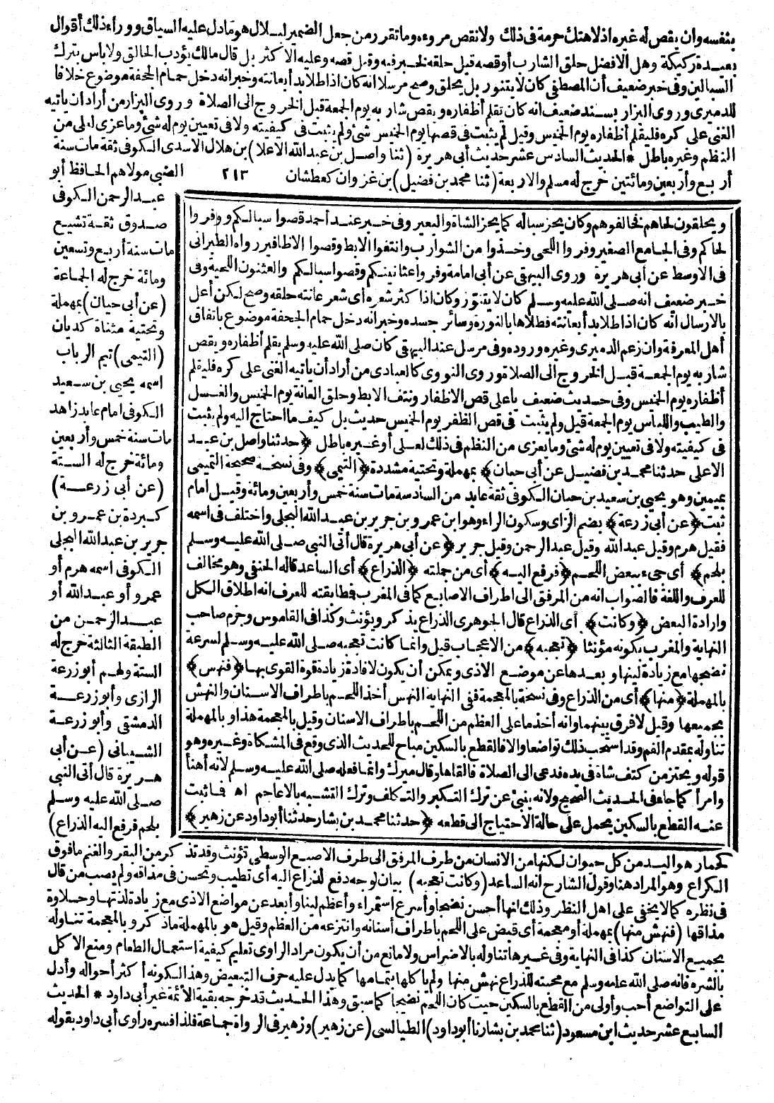 (حَدَّثَنَا وَاصِلُ بْنُ عَبْدِ الْأَعْلَى حَدَّثَنَا مُحَمَّدُ بْنُ فُضَيْلٍ عَنْ أَبِي حَيَّانَ) بِمُهْمَلَةٍ وَتَحْتِيَّةٍ مُشَدَّدَةٍ (التَّيْمِيِّ) وَفِي نُسْخَةٍ صَحِيحَةٍ التَّمِيمِيِّ بِمِيمَيْنِ، وَهُوَ يَحْيَى بْنُ سَعِيدٍ الْكُوفِيُّ ثِقَةٌ عَابِدٌ مِنَ السَّادِسَةِ، مَاتَ سَنَةَ خَمْسٍ وَأَرْبَعِينَ وَمِائَةٍ، وَقِيلَ: إِمَامٌ ثَبْتٌ (عَنْ أَبِي زُرْعَةَ) بِضَمِّ الزَّايِ وَسُكُونِ الرَّاءِ، وَهُوَ ابْنُ عُمَرَ بْنِ جَرِيرِ بْنِ عَبْدِ اللَّهِ الْبَجَلِيُّ، وَاخْتُلِفَ فِي اسْمِهِ، فَقِيلَ: هِرَمٌ، وَقِيلَ: عَبْدُ اللَّهِ، وَقِيلَ: عَبْدُ الرَّحْمَنِ، وَقِيلَ: جَرِيرٌ (عَنْ أَبِي هُرَيْرَةَ قَالَ: أُتِيَ النَّبِيُّ صَلَّى اللَّهُ عَلَيْهِ وَسَلَّمَ بِلَحْمٍ) أَيْ جِيءَ بِبَعْضِ اللَّحْمِ (فَرَفَعَ إِلَيْهِ) أَيْ مِنْ جُمْلَتِهِ (الذِّرَاعَ) أَيِ السَّاعِدَ قَالَهُ الْحَنَفِيُّ، وَهُوَ مُخَالِفٌ لِلْعُرْفِ وَاللُّغَةِ، فَالصَّوَابُ أَنَّهُ مِنَ الْمِرْفَقِ إِلَى أَطْرَافِ الْأَصَابِعِ، كَمَا فِي الْمُغْرِبِ لِمُطَابَقَتِهِ لِلْعُرْفِ، أَنَّهُ إِطْلَاقُ الْكُلِّ وَإِرَادَةُ الْبَعْضِ، (وَكَانَتْ) أَيِ الذِّرَاعُ قَالَ الْجَوْهَرِيُّ: الذِّرَاعُ يُذَكَّرُ وَيُؤَنَّثُ، وَكَذَا فِي الْقَامُوسِ، وَجَزَمَ صَاحِبُ النِّهَايَةِ وَالْمُغْرِبِ بِكَوْنِهِ مُؤَنَّثًا (تُعْجِبُهُ) مِنَ الْإِعْجَابِ، قِيلَ: وَإِنَّمَا كَانَتْ تَعَجِبُهُ صَلَّى اللَّهُ عَلَيْهِ وَسَلَّمَ لِسُرْعَةِ نُضْجِهَا مَعَ زِيَادَةِ لِينِهَا، وَبُعْدِهَا عَنْ مَوْضِعِ الْأَذَى، وَيُمْكِنُ أَنْ يَكُونَ لِإِفَادَةِ زِيَادَةِ قُوَى الْقَوِيِّ بِهَا (فَنَهَسَ) بِالْمُهْمَلَةِ (مِنْهَا) أَيْ مِنَ الذِّرَاعِ وَفِي نُسْخَةٍ بِالْمُعْجَمَةِ، فَفِي النِّهَايَةِ النَّهْسُ أَخْذُ اللَّحْمِ بِأَطْرَافِ الْأَسْنَانِ، وَالنَّهْشُ بِجَمِيعِهَا، وَقِيلَ: لَا فَرْقَ بَيْنَهُمَا، وَأَنَّهُ أَخْذُ مَا عَلَى الْعَظْمِ مِنَ اللَّحْمِ بِأَطْرَافِ الْأَسْنَانِ، وَقِيلَ: بِالْمُعْجَمَةِ هَذَا وَبِالْمُهْمَلَةِ تَنَاوَلُهُ بِمُقَدَّمِ الْفَمِ، وَقَدِ اسْتَحَبَّ ذَلِكَ تَوَاضُعًا، وَإِلَّا فَالْقَطْعُ بِالسِّكِّينِ مُبَاحٌ لِلْحَدِيثِ الَّذِي وَقَعَ فِي الْمِشْكَاةِ وَغَيْرِهِ، وَهُوَ قَوْلُهُ: وَيَحْتَزُّ مِنْ كَتِفِ شَاةٍ فِي يَدِهِ، فَدُعِيَ إِلَى الصَّلَاةِ فَأَلْقَاهَا، وَقَالَ مِيرَكُ: وَإِنَّمَا فِعْلُهُ صَلَّى اللَّهُ عَلَيْهِ وَسَلَّمَ ; لِأَنَّهُ أَهْنَأُ وَأَمْرَأُ كَمَا جَاءَ فِي الْحَدِيثِ الصَّحِيحِ ; وَلِأَنَّهُ يُنْبِئُ عَنْ تَرْكِ التَّكَبُّرِ وَالتَّكَلُّفِ، وَتَرْكِ التَّشَبُّهِ بِالْأَعَاجِمِ، انْتَهَى.