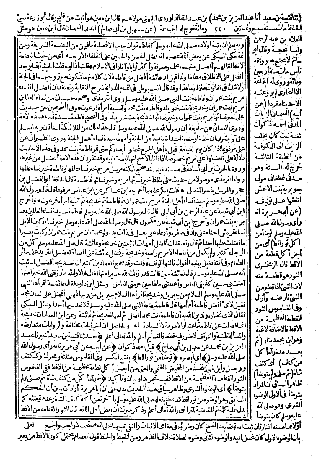 وَسُئِلَ ابْنُ دَاوُدَ، فَقَالَ: عَائِشَةُ أَقْرَأَهَا النَّبِيُّ صَلَّى اللَّهُ عَلَيْهِ وَسَلَّمَ السَّلَامَ مِنْ جِبْرِيلَ وَخَدِيجَةُ أَقْرَأَهَا السَّلَامَ جِبْرِيلُ مِنْ رَبِّهَا، فَهِيَ أَفْضَلُ عَلَى لِسَانِ مُحَمَّدٍ، فَقِيلَ: فَأَيٌّ أَفْضَلُ فَاطِمَةُ أَمْ أُمُّهَا؟ قَالَ: فَاطِمَةُ بَضْعَةُ النَّبِيِّ صَلَّى اللَّهُ عَلَيْهِ وَسَلَّمَ، فَلَا نَعْدِلُ بِهَا أَحَدًا.