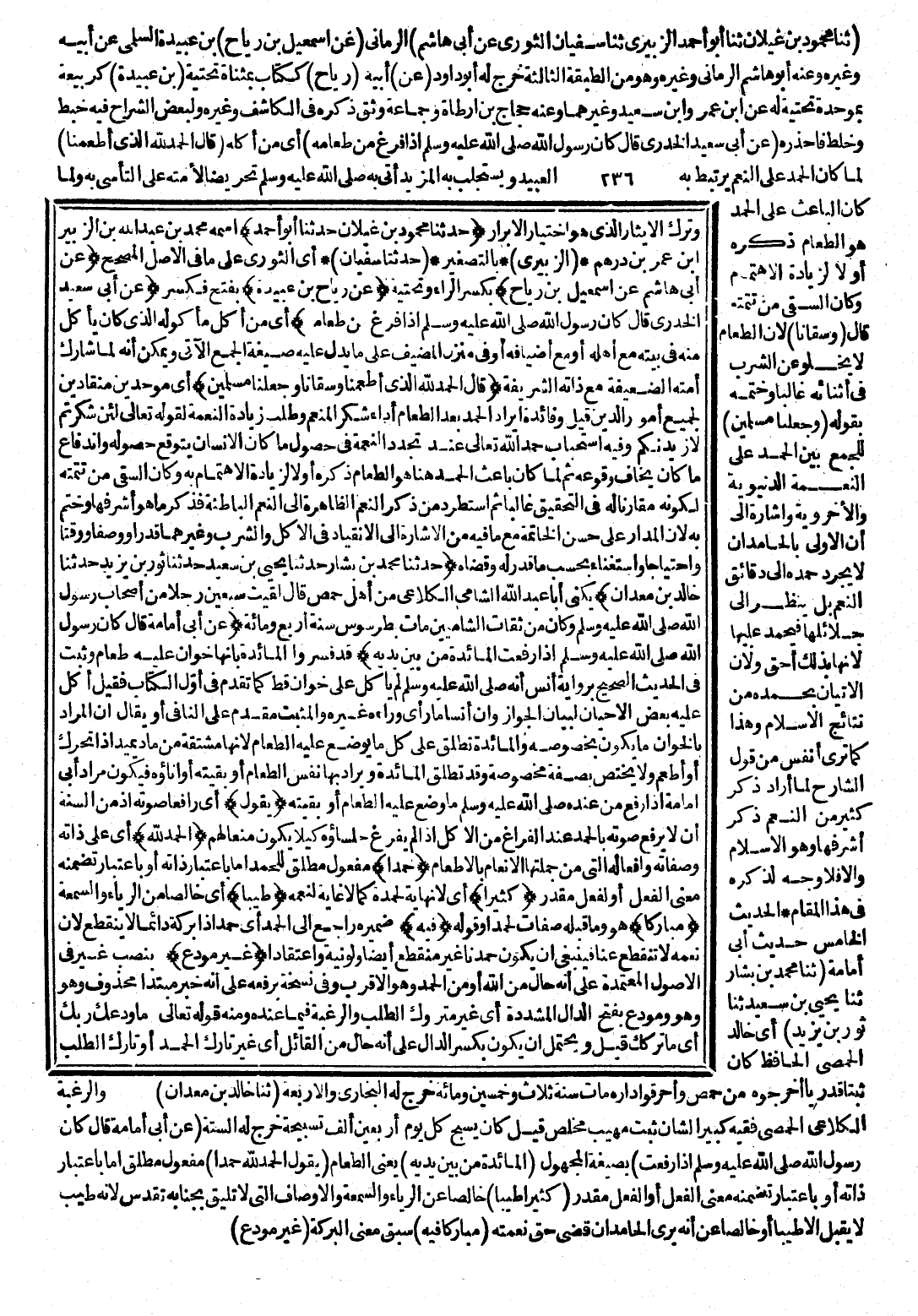 (عَنْ أَبِي هَاشِمٍ عَنْ إِسْمَاعِيلَ بْنِ رِيَاحٍ) بِكَسْرِ الرَّاءِ وَتَحْتِيَّةٍ (عَنْ رِيَاحِ بْنِ عَبِيدَةَ) بِفَتْحٍ فَكَسْرٍ (عَنْ أَبِي سَعِيدٍ الْخُدْرِيِّ، قَالَ: كَانَ رَسُولُ اللَّهِ صَلَّى اللَّهُ عَلَيْهِ وَسَلَّمَ إِذَا فَرَغَ مِنْ طَعَامِهِ) أَيْ مِنْ أَكْلِ مَأْكُولِهِ الَّذِي كَانَ يَأْكُلُ مِنْهُ فِي بَيْتِهِ مَعَ أَهْلِهِ، أَوْ مَعَ أَضْيَافِهِ، أَوْ فِي مَنْزِلِ الْمُضِيفِ، عَلَى مَا يَدُلُّ عَلَيْهِ صِيغَةُ الْجَمْعِ الْآتِي، وَيُمْكِنُ أَنَّهُ لَمَّا شَارَكَ أُمَّتَهُ الضَّعِيفَةَ، مَعَ ذَاتِهِ الشَّرِيفَةِ (قَالَ: الْحَمْدُ لِلَّهِ الَّذِي أَطْعَمَنَا وَسَقَانَا وَجَعَلَنَا مُسْلِمِينَ) أَيْ مُوَحِّدِينَ مُنْقَادِينَ لِجَمِيعِ أُمُورِ الدِّينِ، قِيلَ: وَفَائِدَةُ إِيرَادِ الْحَمْدِ بَعْدَ الطَّعَامِ أَدَاءُ شُكْرِ الْمُنْعِمِ، وَطَلَبُ زِيَادَةِ النِّعْمَةِ، لِقَوْلِهِ تَعَالَى: لَئِنْ شَكَرْتُمْ لَأَزِيدَنَّكُمْ وَفِيهِ اسْتِحْبَابُ حَمْدِ اللَّهِ تَعَالَى عِنْدَ تَجَدُّدِ النِّعْمَةِ، فِي حُصُولِ مَا كَانَ الْإِنْسَانُ يَتَوَقَّعُ حُصُولَهُ، وَانْدِفَاعِ مَا كَانَ يَخَافُ وُقُوعَهُ.