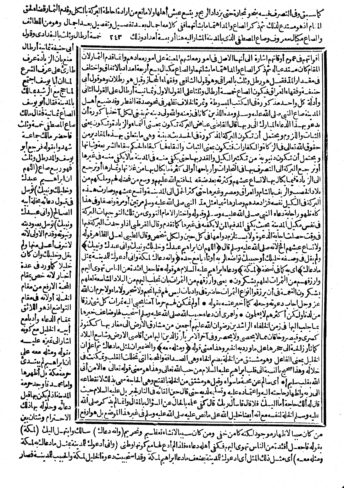 مِنْهُ فِي غَيْرِهَا، أَوْ يُرْجِعُ الْبَرَكَةَ إِلَى التَّصَرُّفِ بِهَا فِي التِّجَارَاتِ وَأَرْبَاحِهَا، أَوْ إِلَى كَثْرَةِ مَا يُكَالُ بِهَا مِنْ غَلَّاتِهَا وَثِمَارِهَا، أَوْ تُرْجَعُ إِلَى الزِّيَادَةِ فِيمَا يُكَالُ بِهَا لِاتِّسَاعِ عَيْشِهِمْ وَكَثْرَتِهِ، بَعْدَ ضِيقِهِ لِمَا فَتَحَ اللَّهُ عَلَيْهِمْ، وَوَسَّعَ مِنْ فَضْلِهِ لَهُمْ، وَمَلَّكَهُمْ مِنْ بِلَادِ الْخِصْبِ وَالرِّيفِ بِالشَّامِ وَالْعِرَاقِ وَمِصْرَ وَغَيْرِهَا، حَتَّى كَثُرَ الْحَمْلُ إِلَى الْمَدِينَةِ، وَاتَّسَعَ عَيْشُهُمْ وَصَارَتْ هَذِهِ الْبَرَكَةُ فِي الْكَيْلِ نَفْسِهِ، فَزَادَ مُدُّهُمْ وَصَارَ هَاشِمِيًّا، مِثْلَ مُدِّ النَّبِيِّ صَلَّى اللَّهُ عَلَيْهِ وَسَلَّمَ مَرَّتَيْنِ أَوْ مَرَّةً وَنِصْفًا، وَفِي هَذَا كُلِّهِ ظُهُورُ إِجَابَةِ دُعَاءِ النَّبِيِّ صَلَّى اللَّهُ عَلَيْهِ وَسَلَّمَ وَقَبُولِهِ، وَاخْتَارَ الْإِمَامُ النَّوَوِيُّ مِنْ تِلْكَ التَّوْجِيهَاتِ الْبَرَكَةَ فِي نَفْسِ مَكِيلِ الْمَدِينَةِ، بِحَيْثُ يَكْفِي الْمُدُّ فِيهَا لِمَنْ لَا يَكْفِيهِ فِي غَيْرٍ كَمَا تَقَدَّمَ، وَقَالَ الْقُرْطُبِيُّ: إِذَا وُجِدَتِ الْبَرَكَةُ فِيهَا فِي وَقْتٍ حَصَلَتْ إِجَابَةُ الدَّعْوَةِ، وَلَا يَسْتَلْزِمُ دَوَامُهَا فِي كُلِّ حِينٍ، وَلِكُلِّ شَخْصٍ، وَقَالَ الطِّيبِيُّ: لَعَلَّ الظَّاهِرَ أَنَّ قَوْلَهُ: وَلِاتِّسَاعِ عَيْشِهِمْ، إِلَخْ. لِأَنَّهُ صَلَّى اللَّهُ عَلَيْهِ وَسَلَّمَ قَالَ: (اللَّهُمَّ إِنَّ إِبْرَاهِيمَ عَبْدُكَ وَخَلِيلُكَ وَنَبِيُّكَ، وَإِنِّي عَبْدُكَ وَنَبِيُّكَ) وَلَمْ يَقُلْ فِي وَصْفِهِ خَلِيلُكَ أَوْ حَبِيبُكَ تَوَاضُعًا لِرَبِّهِ، أَوْ تَأَدُّبًا مَعَ جَدِّهِ (وَأَنَّهُ دَعَاكَ لِمَكَّةَ، وَإِنِّي أَدْعُوكَ لِلْمَدِينَةِ بِمِثْلِ مَا دَعَاكَ) أَيْ بِهِ كَمَا فِي نُسْخَةٍ (لِمَكَّةَ) وَدُعَاءُ إِبْرَاهِيمَ عَلَيْهِ السَّلَامُ، هُوَ قَوْلُهُ: فَاجْعَلْ أَفْئِدَةً مِنَ النَّاسِ تَهْوِي إِلَيْهِمْ وَارْزُقْهُمْ مِنَ الثَّمَرَاتِ لَعَلَّهُمْ يَشْكُرُونَ يَعْنِي وَارْزُقْهُمْ مِنَ الثَّمَرَاتِ، بِأَنْ تَجْلِبَ إِلَيْهِمْ مِنَ الْبِلَادِ الشَّاسِعَةِ، لَعَلَّهُمْ يَشْكُرُونَ النِّعْمَةَ فِي أَنْ يُرْزَقُوا أَنْوَاعَ الثَّمَرَاتِ حَاضِرَةً فِي وَادِيَاتٍ لَيْسَ لَهُمْ فِيهَا نَجْمٌ، وَلَا شَجَرٌ وَلَا مَاءٌ، وَلَا جَرَمَ أَنَّ اللَّهَ عَزَّ وَجَلَّ أَجَابَ دَعْوَتَهُ وَجَعَلَهُ كَمَا أَخْبَرَ عَنْهُ بِقَوْلِهِ: أَوَلَمْ نُمَكِّنْ لَهُمْ حَرَمًا آمِنًا يُجْبَى إِلَيْهِ ثَمَرَاتُ كُلِّ شَيْءٍ رِزْقًا مِنْ لَدُنَّا وَلَكِنَّ أَكْثَرَهُمْ لَا يَعْلَمُونَ وَلَعَمْرِي إِنَّ دُعَاءَ حَبِيبِ اللَّهِ صَلَّى اللَّهُ عَلَيْهِ وَسَلَّمَ اسْتُجِيبَ لَهَا، وَضَاعَفَ خَيْرَهَا، بِمَا جَلَبَ إِلَيْهَا فِي زَمَنِ الْخُلَفَاءِ الرَّاشِدِينَ، رِضْوَانُ اللَّهِ عَلَيْهِمْ أَجْمَعِينَ، مِنْ مَشَارِقِ الْأَرْضِ إِلَى مَغَارِبِهَا، كَكُنُوزِ كِسْرَى وَقَيْصَرَ وَخَاقَانَ مِمَّا لَا يُحْصَى وَلَا يُحْصَرُ، وَفِي آخِرِ الْأَمْرِ، يَأْرِزُ الدِّينُ إِلَيْهَا مِنْ أَقَاصِي الْأَرْضِ وَشَاسِعِ الْبِلَادِ، كَمَا تَأْرِزُ الْحَيَّةُ إِلَى جُحْرِهَا عَلَى مَا وَرَدَ بِهِ الْخَبَرُ، وَهَذَا مَعْنَى قَوْلِهِ: (وَمِثْلَهُ مَعَهُ) وَالضَّمِيرَانِ لِمِثْلِ مَا دَعَاكَ، ثُمَّ اعْلَمْ أَنَّ الْخَلِيلَ بِمَعْنَى الْفَاعِلٍ، وَهُوَ مُشْتَقٌّ مِنَ الْخُلَّةِ بِضَمِّ الْخَاءِ، وَهِيَ الصَّدَاقَةُ وَالْمَحَبَّةُ الَّتِي تَخَلَّلَتِ الْقَلْبَ، وَتَمَكَّنَتْ فِي خِلَالِهِ، وَهَذَا صَحِيحٌ بِالنِّسْبَةِ إِلَى قَلْبِ إِبْرَاهِيمَ عَلَيْهِ السَّلَامُ مِنْ حُبِّ اللَّهِ تَعَال