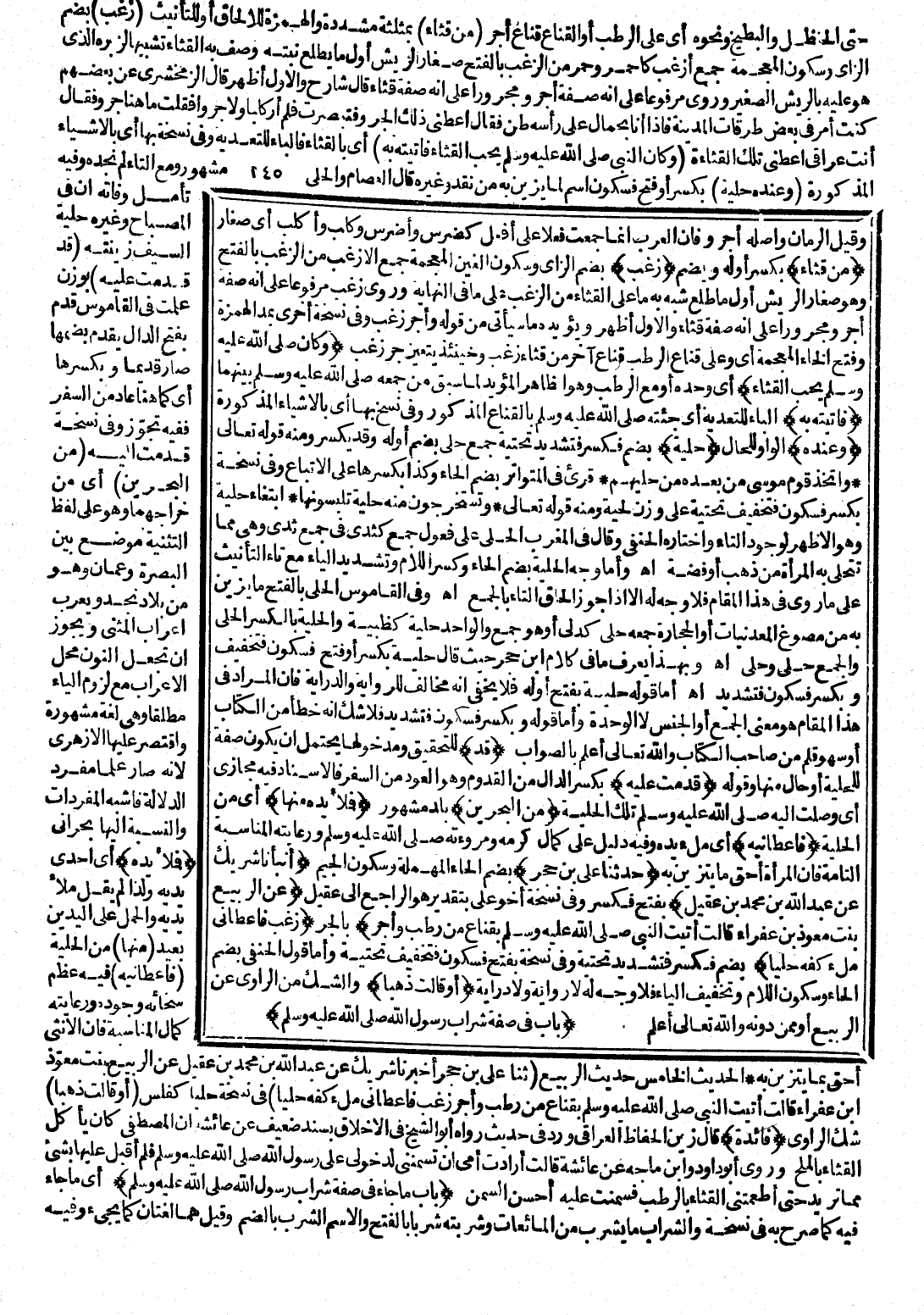 وَقِيلَ: الرُّمَّانُ وَأَصْلُهُ أَجْرُوٌ، فَإِنَّ الْعَرَبَ إِنَّمَا جَمَعَتْ فِعْلًا عَلَى أَفْعُلٍ، كَضِرْسٍ وَأَضْرُسٍ، وَكَلْبٍ وَأَكْلُبٍ أَيْ صِغَارٍ (مِنْ قِثَّاءِ) بِكَسْرِ أَوَّلِهِ وَبِضَمٍّ (زُغْبٍ) بِضَمِّ الزَّايِ وَسُكُونِ الْغَيْنِ الْمُعْجَمَةِ، جَمْعُ الْأَزْغَبِ مِنَ الزَّغَبِ بِالْفَتْحِ، هُوَ صِغَارُ الرِّيشِ أَوَّلُ مَا طَلَعَ شَبَّهَ بِهِ مَا عَلَى الْقِثَّاءِ مِنَ الزَّغَبِ عَلَى مَا فِي النِّهَايَةِ، وَرُوِيَ زُغْبٌ مَرْفُوعًا عَلَى أَنَّهُ صِفَةُ أَجْرٍ، وَمَجْرُورًا عَلَى أَنَّهُ صِفَةُ قِثَّاءٍ، وَالْأَوَّلُ أَظْهَرُ وَيُؤَيِّدُهُ مَا سَيَأْتِي مِنْ قَوْلِهِ وَأَجْرٍ زُغْبٍ، وَفِي نُسْخَةٍ أُخْرَى بِمَدِّ الْهَمْزَةِ وَفَتْحِ الْخَاءِ الْمُعْجَمَةِ، أَيْ وَعَلَى قِنَاعِ الرُّطَبِ قِنَاعٌ آخَرُ مِنْ قِثَّاءِ زُغْبٍ، وَحِينَئِذٍ يَتَعَيَّنُ جَرُّ زُغْبٍ (كَانَ صَلَّى اللَّهُ عَلَيْهِ وَسَلَّمَ يُحِبُّ الْقِثَّاءَ) أَيْ وَحْدَهُ أَوْ مَعَ الرُّطَبِ، وَهُوَ الظَّاهِرُ الْمُؤَيِّدُ لِمَا سَبَقَ مِنْ جَمْعِهِ صَلَّى اللَّهُ عَلَيْهِ وَسَلَّمَ بَيْنَهُمَا (فَأَتَيْتُ بِهِ) الْبَاءُ لِلتَّعْدِيَةِ أَيْ جِئْتُهُ صَلَّى اللَّهُ عَلَيْهِ وَسَلَّمَ بِالْقِنَاعِ الْمَذْكُورِ، وَفِي نُسَخٍ بِهَا أَيِ الْأَشْيَاءِ الْمَذْكُورَةِ (وَعِنْدَهُ) الْوَاوُ لِلْحَالِ (حُلِيَّةٌ) بِضَمٍّ فَكَسْرٍ فَتَشْدِيدِ تَحْتِيَّةٍ جَمْعُ حُلِيٍّ بِضَمِّ أَوَّلِهِ، وَقَدْ يُكْسَرُ، وَمِنْهُ قَوْلُهُ تَعَالَى: وَاتَّخَذَ قَوْمُ مُوسَى مِنْ بَعْدِهِ مِنْ حُلِيِّهِمْ قُرِئَ فِي الْمُتَوَاتِرِ بِضَمِّ الْحَاءِ، وَكَذَا بِكَسْرِهَا عَلَى الْإِتْبَاعِ وَفِي نُسْخَةٍ بِكَسْرٍ فَسُكُونٍ فَتَخْفِيفِ تَحْتِيَّةٍ عَلَى وَزْنٍ لِحْيَةٍ، وَمِنْهُ قَوْلُهُ تَعَالَى: وَتَسْتَخْرِجُوا مِنْهُ حِلْيَةً تَلْبَسُونَهَا ابْتِغَاءَ حِلْيَةٍ وَهُوَ الْأَظْهَرُ لِوُجُودِ التَّاءِ وَاخْتَارَهُ الْحَنَفِيُّ.