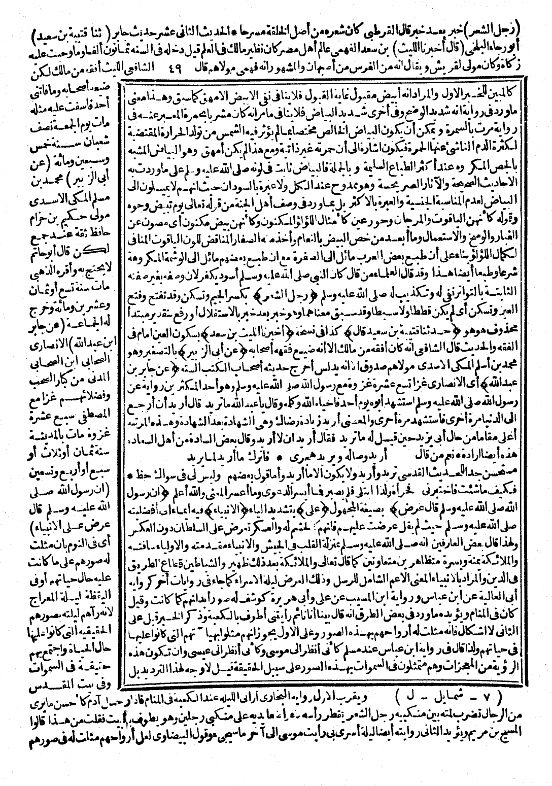 (حَدَّثَنَا قُتَيْبَةُ بْنُ سَعِيدٍ قَالَ) : كَذَا فِي نُسْخَةٍ. (أَخْبَرَنَا اللَّيْثُ بْنُ سَعْدٍ) : بِسُكُونِ الْعَيْنِ، إِمَامُ الْفِقْهِ وَالْحَدِيثِ، قَالَ الشَّافِعِيُّ: أَنَّهُ كَانَ أَفْقَهَ مِنْ مَالِكٍ إِلَّا أَنَّهُ ضَيَّعَ فِقْهَهُ أَصْحَابُهُ. (عَنْ أَبِي الزُّبَيْرِ) : بِالتَّصْغِيرِ، وَهُوَ مُحَمَّدُ بْنُ أَسْلَمَ الْمَكِّيٌّ الْأَسَدِيُّ مَوْلَاهُمْ، صَدُوقٌ إِلَّا أَنَّهُ يُدَلِّسُ، أَخْرَجَ حَدِيثَهُ أَصْحَابُ الْكُتُبِ السِّتَّةِ. (عَنْ جَابِرِ بْنِ عَبْدِ اللَّهِ) : أَيِ الْأَنْصَارِيِّ، غَزَا تِسْعَ عَشَرَ غَزْوَةً مَعَ رَسُولِ اللَّهِ صَلَّى اللَّهُ عَلَيْهِ وَسَلَّمَ، وَهُوَ أَحَدُ الْمُكْثِرِينَ رِوَايَةً عَنْ رَسُولِ اللَّهِ صَلَّى اللَّهُ عَلَيْهِ وَسَلَّمَ، اسْتُشْهِدَ أَبُوهُ يَوْمَ أُحُدٍ فَأَحْيَاهُ اللَّهُ وَكَلَّمَهُ وَقَالَ: يَا عَبْدَ اللَّهِ مَا تُرِيدُ؟ قَالَ: أُرِيدُ أَنْ أَرْجِعَ إِلَى الدُّنْيَا فَأَسْتَشْهِدَ مَرَّةً أُخْرَى. وَالْمَعْنَى أُرِيدُ زِيَادَةَ رِضَاكَ وَهِيَ الشَّهَادَةُ بَعْدَ الشَّهَادَةِ، وَهَذِهِ الْمَرْتَبَةُ أَعْلَى مَقَامًا مِنْ حَالِ أَبِي يَزِيدَ حِينَ قِيلَ لَهُ: مَا تُرِيدُ؟ فَقَالَ: أَنْ لَا أُرِيدَ. وَقَالَ بَعْضُ السَّادَةِ مِنْ أَهْلِ السَّعَادَةِ: هَذِهِ أَيْضًا إِرَادَةٌ. نِعْمَ مَنْ قَالَ: