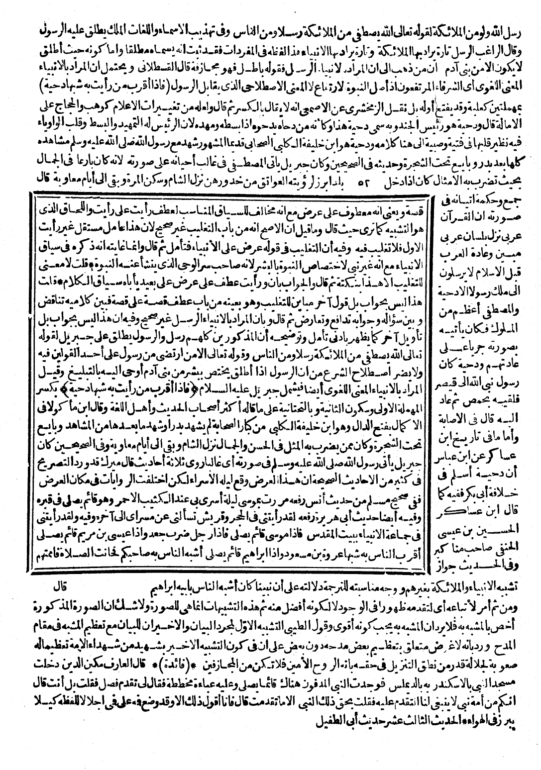 قِصَّةٍ، وَيَعْنِي أَنَّهُ مَعْطُوفٌ عَلَى عُرِضَ مَعَ أَنَّهُ مُخَالِفٌ لِلسِّيَاقِ الْمُنَاسِبِ لِعَطْفِ رَأَيْتُ عَلَى رَأَيْتُ وَاللَّحَاقِ الَّذِي هُوَ التَّشْبِيهُ كَمَا تَرَى حَيْثُ قَالَ: وَمَا قِيلَ إِنَّ الْأَصَحَّ أَنَّهُ مِنْ بَابِ التَّغْلِيبِ غَيْرُ صَحِيحٍ لِأَنَّ هَذَا عَامِلٌ مُسْتَقِلٌّ غَيْرُ رَأَيْتُ الْأَوَّلِ فَلَا تَغْلِيبَ فِيهِ وَفِيهِ أَنَّ التَّغْلِيبَ فِي قَوْلِهِ عُرِضَ عَلَيَّ الْأَنْبِيَاءُ فَتَأَمَّلْ، ثُمَّ قَالَ: وَإِنَّمَا غَايَتُهُ أَنَّهُ ذَكَرَهُ فِي سِيَاقِ الْأَنْبِيَاءِ مَعَ أَنَّهُ غَيْرُ نَبِيٍّ لِاخْتِصَاصِ النُّبُوَّةِ بِالْبَشَرِ لِأَنَّهُ صَاحِبُ