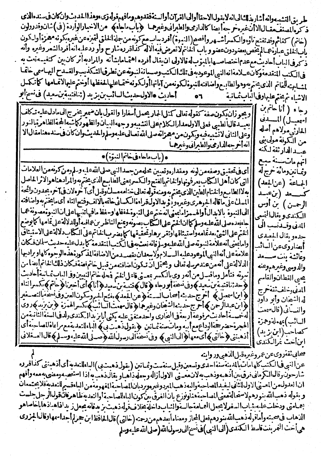 وَتَحْقِيقِهَا كَمَا يُضْرَبُ الْخَاتَمُ عَلَى الْكِتَابَةِ دَلَالَةً عَلَى الِاسْتِيثَاقِ، وَإِمَّا بِمَعْنَى أَنَّهُ عَلَامَةٌ لِنُبُوَّتِهِ صَلَّى اللَّهُ عَلَيْهِ وَسَلَّمَ فَإِنَّهُ نُعِتَ بِهِ فِي الْكُتُبِ الْمُتَقَدِّمَةِ كَمَا يَدُلُّ عَلَيْهِ حَدِيثُ سَلْمَانَ، فَكَانَ عَلَامَةً عَلَى النَّبِيِّ الْمَوْعُودِ عَلَيْهِ السَّلَامُ، وَلَا يَبْعُدُ أَنْ يُقْصَدَ مِنَ الْإِضَافَةِ الْمَذْكُورَةِ هَذِهِ الْوُجُوهُ كُلُّهَا وَيُرَادُ بِهَا الدَّلَالَةُ عَلَى أَنَّهُ مِنْ عِنْدِ مُرْسِلِهِ تَعَالَى، وَيُحْتَمَلُ أَنْ تَكُونَ إِضَافَتُهُ مِنْ قَبِيلِ خَاتَمِ فِضَّةٍ فَكَانَ ذَلِكَ الْخَاتَمُ أَيْضًا مِنْ نُبُوَّتِهِ، فَتَأَمَّلْ، وَمَا قِيلَ مِنْ أَنَّهُ رُوِيَ بِالْكَسْرِ بِمَعْنَى فَاعِلِ الْخَتْمِ فَمَحَلُّهُ خَاتَمُ النَّبِيِّينَ، وَفِي الْبَابِ ثَمَانِيَةُ أَحَادِيثَ.