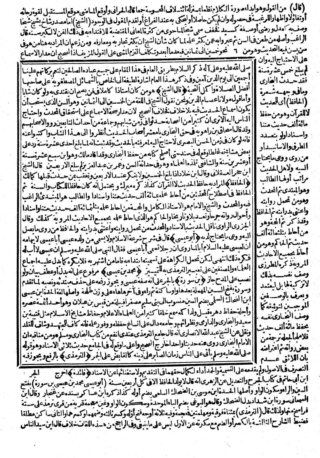 (أَبُو عِيسَى) : قَالَ فِي شَرْحِ شِرْعَةِ الْإِسْلَامِ: وَلَا يُسَمَّى مَنْ وَلَدُهُ عِيسَى أَبَا عِيسَى لِإِيهَامِهِ أَنَّ لِعِيسَى عَلَيْهِ السَّلَامُ أَبًا ; لِمَا رُوِيَ أَنَّ رَجُلًا تَسَمَّى أَبَا عِيسَى فَقَالَ النَّبِيُّ صَلَّى اللَّهُ عَلَيْهِ وَسَلَّمَ: " إِنَّ عِيسَى لَا أَبَ لَهُ " فَكَرِهَ ذَلِكَ، انْتَهَى. لَكِنْ تُحْمَلُ الْكَرَاهَةُ عَلَى تَسْمِيَتِهِ ابْتِدَاءً بِهِ، فَأَمَّا مَنِ اشْتُهِرَ بِهِ فَلَا يُكْرَهُ كَمَا يَدُلُّ عَلَيْهِ إِجْمَاعُ الْعُلَمَاءِ وَالْمُصَنِّفِينَ عَلَى تَعْبِيرِ التِّرْمِذِيِّ بِهِ لِلتَّمْيِيزِ. (مُحَمَّدُ بْنُ عِيسَى) : مَرْفُوعٌ عَلَى أَنَّهُ بَدَلٌ أَوْ عَطْفُ بَيَانٍ وَلَوْ نُصِبَ عَلَى الْمَدْحِ جَازَ (بْنِ سَوْرَةَ) : بِالْجَرِّ عَلَى أَنَّهُ صِفَةُ عِيسَى وَيَجُوزُ رَفْعُهُ عَلَى حَذْفِ مُبْتَدَئِهِ وَنَصْبُهُ لِمَا تَقَدَّمَ، وَسَوْرَةُ بِفَتْحِ السِّينِ الْمُهْمَلَةِ بَعْدَهَا وَاوٌ سَاكِنَةٌ ثُمَّ رَاءٌ وَفِي آخِرِهَا هَاءٌ ; عَلَى وَزْنِ طَلْحَةَ وَأَصْلُهَا لُغَةً الْحِدَّةُ، ابْنِ عِيسَى بْنِ الضَّحَّاكِ السُّلَمِيِّ بِضَمِّ السِّينِ مَنْسُوبٌ إِلَى بَنِي سُلَيْمٍ مُصَغَّرٌ قَبِيلَةٍ مِنْ قَيْسِ بْنِ عَيْلَانَ، وَهُوَ أَحَدُ أَئِمَّةِ عَصْرِهِ وَأَجِلَّةِ حُفَّاظِ دَهْرِهِ قِيلَ وُلِدَ أَكْمَهَ سَمِعَ خَلْقًا كَثِيرًا مِنَ الْعُلَمَاءِ الْأَعْلَامِ وَحُفَّاظِ مَشَايِخِ الْإِسْلَامِ مِثْلَ قُتَيْبَةَ بْنِ سَعِيدٍ وَالْبُخَارِيِّ وَالدَّارِمِيِّ وَنُظَرَائِهِمْ، وَجَامِعُهُ دَالٌّ عَلَى اتِّسَاعِ حِفْظِهِ وَوُفُورِ عِلْمِهِ فَإِنَّهُ كَافٍ لِلْمُجْتَهِدِ وَشَافٍ لِلْمُقَلِّدِ. وَنُقِلَ عَنِ الشَّيْخِ عَبْدِ اللَّهِ الْأَنْصَارِيِّ أَنَّهُ قَالَ: جَامِعُ التِّرْمِذِيُّ عِنْدِي أَنْفَعُ مِنْ كِتَابِ الْبُخَارِيِّ وَمُسْلِمٍ. وَمِنْ مَنَاقِبِهِ أَنَّ الْإِمَامَ الْبُخَارِيَّ رَوَى عَنْهُ حَدِيثًا وَاحِدًا خَارِجَ الصَّحِيحِ وَأَعْلَى مَا وَقَعَ لَهُ فِي الْجَامِعِ حَدِيثٌ ثُلَاثِيُّ الْإِسْنَادِ وَهُوَ قَوْلُهُ صَلَّى اللَّهُ عَلَيْهِ وَسَلَّمَ: " يَأْتِي عَلَى النَّاسِ زَمَانٌ الصَّابِرُ عَلَى دِينِهِ كَالْقَابِضِ عَلَى الْجَمْرِ (التِّرْمِذِيُّ) : بِالرَّفْعِ وَيَجُوزُ فِيهِ