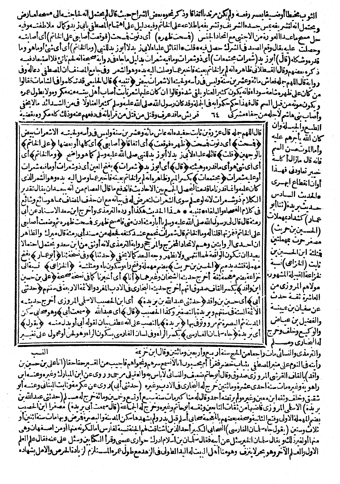 (حَدَّثَنَا) : وَفِي نُسْخَةٍ «ثَنَا» . (أَبُو عَمَّارٍ) : بِفَتْحِ مُهْمَلَةٍ فَتَشْدِيدِ مِيمٍ. (الْحُسَيْنُ بْنُ حُرَيْثٍ) : بِضَمِّ مُهْمَلَةٍ