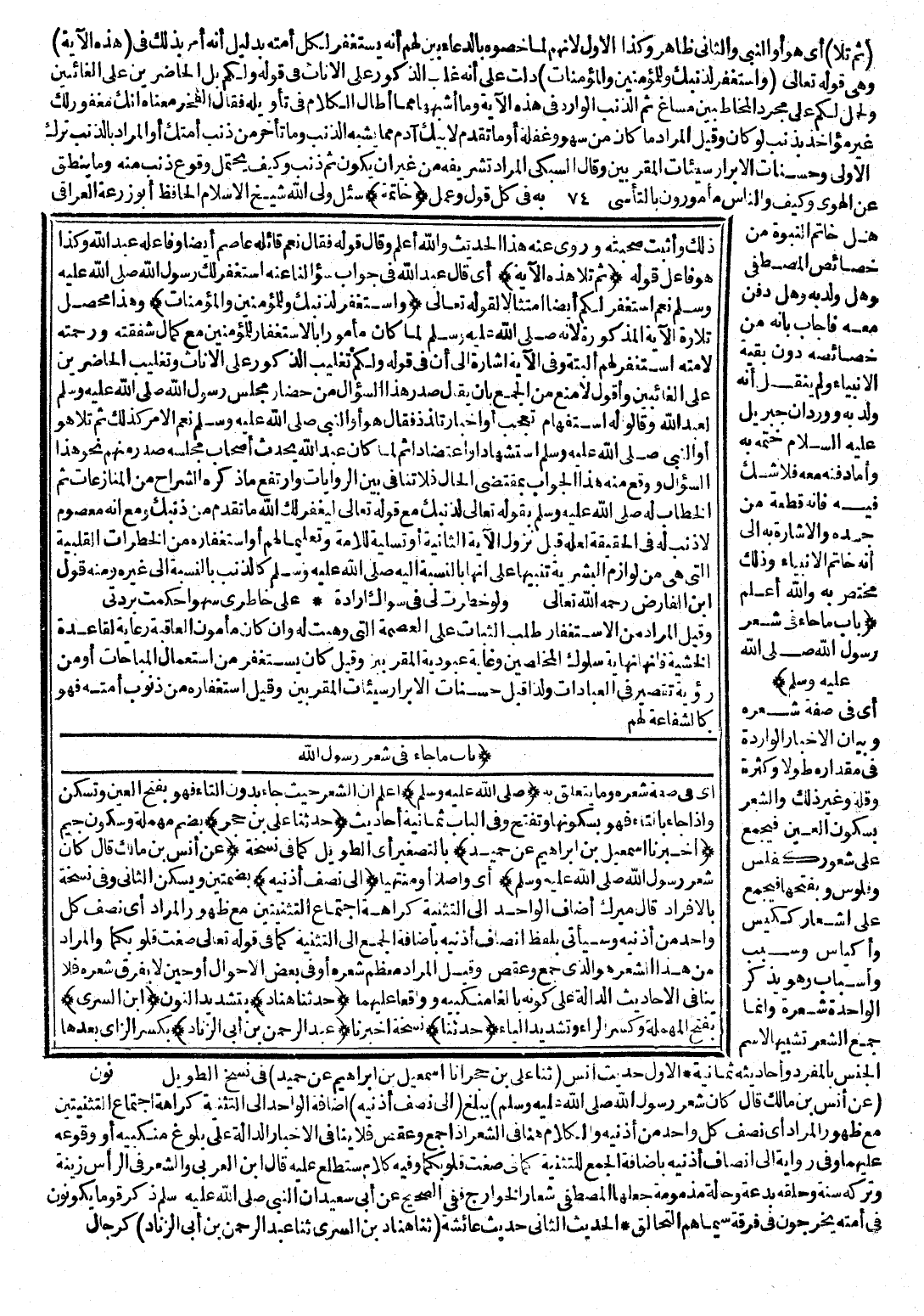 صَلَّى اللَّهُ عَلَيْهِ وَسَلَّمَ لَمَّا كَانَ مَأْمُورًا بِالِاسْتِغْفَارِ لِلْمُؤْمِنِينَ مَعَ كَمَالِ شَفَقَتِهِ وَرَحْمَتِهِ لِأُمَّتِهِ اسْتَغْفَرَ لَهُمُ الْبَتَّةَ، وَفِي الْآيَةِ إِشَارَةٌ إِلَى أَنَّ فِي قَوْلِهِ: «وَلَكُمْ» تَغْلِيبُ الذُّكُورِ عَلَى الْإِنَاثِ، وَتَغْلِيبُ الْحَاضِرِينَ عَلَى الْغَائِبِينَ. وَأَقُولُ لَا مَنْعَ مِنَ الْجَمْعِ بِأَنْ يُقَالَ صَدَرَ هَذَا السُّؤَالُ مِنْ حُضَّارِ مَجْلِسِ رَسُولِ اللَّهِ صَلَّى اللَّهُ عَلَيْهِ وَسَلَّمَ لِعَبْدِ اللَّهِ، وَقَالُوا لَهُ اسْتِفْهَامُ تَعَجُّبٍ أَوْ إِخْبَارُ تَلَذُّذٍ، فَقَالَ هُوَ أَوِ النَّبِيُّ صَلَّى اللَّهُ عَلَيْهِ وَسَلَّمَ: نَعَمِ، الْأَمْرُ كَذَلِكَ، ثُمَّ تَلَا هُوَ أَوِ النَّبِيُّ صَلَّى اللَّهُ عَلَيْهِ وَسَلَّمَ اسْتِشْهَادًا وَاعْتِضَادًا، ثُمَّ لَمَّا كَانَ عَبْدُ اللَّهِ يُحَدِّثُ أَصْحَابَ مَجْلِسِهِ صَدَرَ مِنْهُمْ نَحْوَ هَذَا السُّؤَالِ وَوَقَعَ مِنْهُ هَذَا الْجَوَابُ بِمُقْتَضَى الْحَالِ، فَلَا تَنَافِيَ بَيْنَ الرِّوَايَاتِ، وَارْتَفَعَ مَا ذَكَرَهُ الشُّرَّاحُ مِنَ الْمُنَازَعَاتِ ثُمَّ الْخِطَابُ لَهُ صَلَّى اللَّهُ عَلَيْهِ وَسَلَّمَ بِقَوْلِهِ تَعَالَى: (لِذَنْبِكَ) مَعَ قَوْلِهِ تَعَالَى: (لِيَغْفِرَ لَكَ اللَّهُ مَا تَقَدَّمَ مِنْ ذَنْبِكَ) وَمَعَ أَنَّهُ مَعْصُومٌ لَا ذَنْبَ لَهُ فِي الْحَقِيقَةِ، لَعَلَّهُ قَبْلَ نُزُولِ الْآيَةِ الثَّانِيَةِ أَوْ تَسْلِيَةً لِلْأُمَّةِ وَتَعْلِيمًا لَهُمْ أَوِ اسْتِغْفَارُهُ مِنَ الْخَطَرَاتِ الْقَلْبِيَّةِ الَّتِي هِيَ مِنْ لَوَازِمِ الْبَشَرِيَّةِ ; تَنْبِيهًا عَلَى أَنَّهَا بِالنِّسْبَةِ إِلَيْهِ صَلَّى اللَّهُ عَلَيْهِ وَسَلَّمَ كَالذَّنْبِ بِالنِّسْبَةِ إِلَى غَيْرِهِ، وَمِنْهُ قَوْلُ ابْنِ الْفَارِضِ رَحِمَهُ اللَّهُ تَعَالَى: