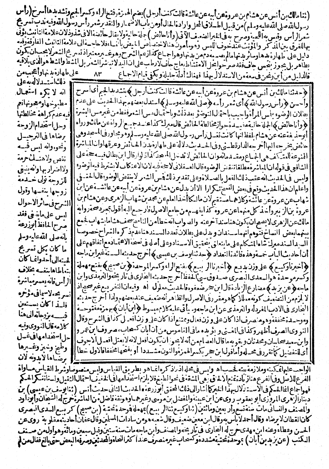 حُجَّةٌ عَلَى الشَّافِعِيِّ فِي قَوْلِهِ: إِنَّ الْمُبَاشَرَةَ مُطْلَقًا تَنْقُضُ الْوُضُوءَ. قَالَ الْعَسْقَلَانِيُّ: لَا حُجَّةَ فِيهِ ; لِأَنَّ الِاعْتِكَافَ لَا يُشْتَرَطُ فِيهِ الْوُضُوءُ، وَلَيْسَ فِي الْحَدِيثِ أَنَّهُ عَقَّبَ ذَلِكَ الْفِعْلَ بِالصَّلَاةِ، وَعَلَى تَقْدِيرِ ذَلِكَ فَمَسُّ الشَّعْرِ لَا يَنْقُضُ الْوُضُوءَ. قَالَ الْحَنَفِيُّ: وَاعْلَمْ أَنَّ هَذَا الْحَدِيثَ وَقَعَ فِي بَعْضِ النُّسَخِ تَكْرَارًا إِلَّا أَنَّ بَدَلَ: عَنْ هِشَامِ بْنِ عُرْوَةَ عَنْ أَبِيهِ عَنْ عَائِشَةَ، عَنِ ابْنِ شِهَابٍ عَنْ عُرْوَةَ، عَنْ عَائِشَةَ. وَكِلَاهُمَا مُسْتَقِيمٌ ; لِأَنَّ مَالِكًا أَخَذَ الْعِلْمَ عَنْ مُحَمَّدِ بْنِ شِهَابٍ الزُّهْرِيِّ، وَعَنْ هِشَامِ بْنِ عُرْوَةَ بْنِ الزُّبَيْرِ. وَأَخَذَ كُلٌّ مِنْهُمَا عَنْ عُرْوَةَ، كَذَا يُفْهَمُ مِنْ جَامِعِ الْأُصُولِ، فَارْجِعْ إِلَيْهِ، أَقُولُ: بِمُجَرَّدِ صِحَّةِ رِوَايَةٍ مَالِكٍ عَنِ الزُّهْرِيِّ لَا يَصِحُّ أَنْ يَكُونَ هُنَا سَنَدٌ آخَرُ عَنْهُ، وَالصَّوَابُ أَنَّهُ خَطَأٌ مِنَ النَّاسِخِ صَحَّفَ هِشَامًا بِشِهَابٍ فَجَمَعَ بَيْنَهُمَا بَعْضُ النُّسَّاخِ فَتُوِهِّمَ أَنَّهُمَا سَنَدَانِ، وَيَدُلُّ عَلَى بُطْلَانِ تَعَدُّدِ السَّنَدِ هُنَا عَدَمُ ذِكْرِهِ الشُّرَّاحُ خُصُوصًا السَّيِّدُ السَّنَدُ مِيرَكُ شَاهِ الْمُتَكَلِّمُ عَلَى مَا يَتَعَلَّقُ بِتَحْقِيقِ الْإِسْنَادِ وَعَلَى أَصْلِهِ فِي نُسْخَةِ الِاعْتِمَادِ مَعَ اتِّفَاقِهِمْ عَلَى أَنَّ أَحَادِيثَ الْبَابِ خَمْسَةٌ وَهَذِهِ فَائِدَةُ التَّعْدَادِ.