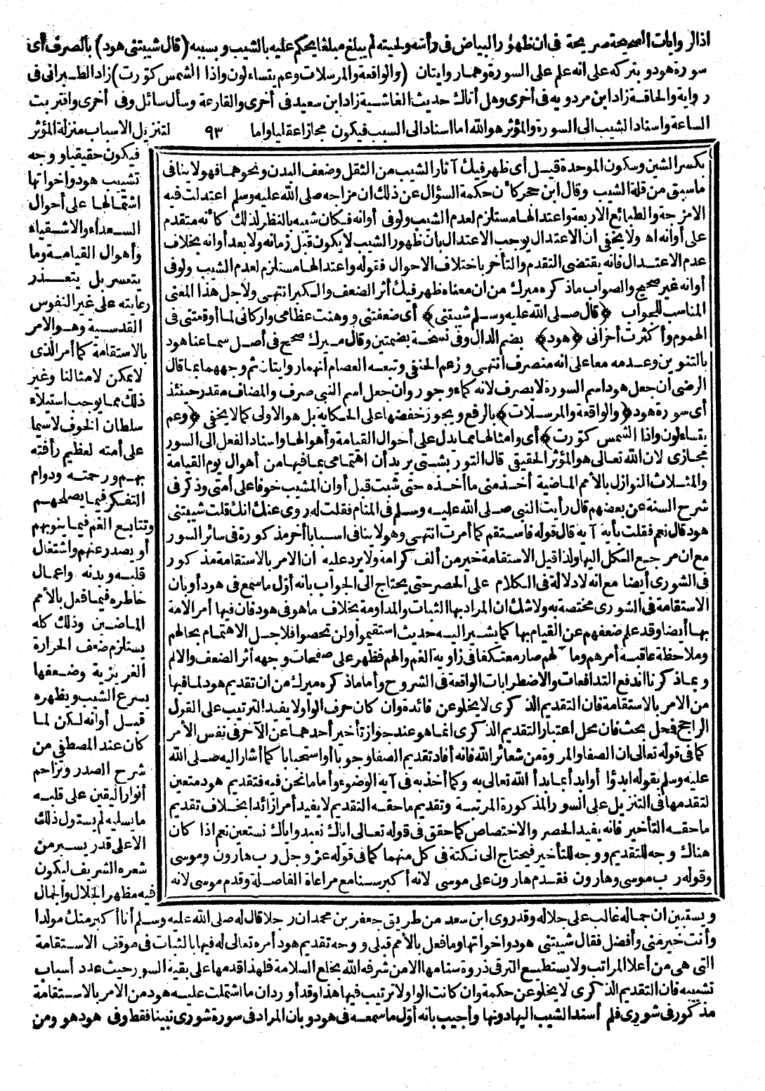 وَلَا يُرَدُّ عَلَيْهِ أَنَّ الْأَمْرَ بِالِاسْتِقَامَةِ مَذْكُورٌ فِي الشُّورَى أَيْضًا، مَعَ أَنَّهُ لَا دَلَالَةَ فِي الْكَلَامِ عَلَى الْحَصْرِ حَتَّى يُحْتَاجَ إِلَى الْجَوَابِ بِأَنَّهُ أَوَّلُ مَا سَمِعَ فِي هُودٍ أَوْ بِأَنَّ الِاسْتِقَامَةَ فِي الشُّورَى مُخْتَصَّةٌ بِهِ، وَلَا شَكَّ أَنَّ الْمُرَادَ بِهَا الثَّبَاتُ وَالْمُدَاوَمَةُ، بِخِلَافِ مَا هُوَ فِي هُودٍ، فَإِنَّ فِيهَا أَمْرُ الْأُمَّةِ بِهَا أَيْضًا، وَقَدْ عَلِمَ ضَعْفَهُمْ عَنِ الْقِيَامِ بِهَا كَمَا يُشِيرُ إِلَيْهِ حَدِيثُ: «اسْتَقِيمُوا وَلَنْ تُحْصُوا» فَلِأَجْلِ الِاهْتِمَامِ بِحَالِهِمْ وَمُلَاحَظَةِ عَاقِبَةِ أَمْرِهِمْ وَمَآلِهِمْ صَارَ مُعْتَكِفًا فِي زَاوِيَةِ الْغَمِّ وَالْهَمِّ، فَظَهَرَ عَلَى صَفَحَاتِ وَجْهِهِ أَثَرُ الضَّعْفِ وَالْأَلَمِ، وَبِمَا ذَكَرْنَا انْدَفَعَ التَّدَافُعَاتُ وَالِاضْطِرَابَاتُ الْوَاقِعَةُ فِي الشُّرُوحِ، وَأَمَّا مَا ذَكَرَهُ مِيرَكُ مِنْ أَنَّ تَقْدِيمَ هُودٍ لِمَا فِيهَا مِنَ الْأَمْرِ بِالِاسْتِقَامَةِ فَإِنَّ التَّقْدِيمَ الذِّكْرِيَّ لَا يَخْلُو عَنْ فَائِدَةٍ، وَإِنْ كَانَ حَرْفُ الْوَاوِ لَا يُفِيدُ التَّرْتِيبَ عَلَى الْقَوْلِ الرَّاجِحِ فَمَحَلُّ بِحَثٍ فَإِنَّ مَحَلَّ اعْتِبَارِ التَّقْدِيمِ الذِّكْرِيِّ إِنَّمَا هُوَ عِنْدَ جَوَازِ تَأْخِيرِ أَحَدِهِمَا عَنِ الْآخَرِ فِي نَفْسِ الْأَمْرِ كَمَا فِي قَوْلِهِ تَعَالَى: (إِنَّ الصَّفَا وَالْمَرْوَةَ مِنْ شَعَائِرِ اللَّهِ) فَإِنَّهُ أَفَادَ تَقْدِيمَ الصَّفَا وُجُوبًا أَوِ اسْتِحْبَابًا، كَمَا أَشَارَ إِلَيْهِ صَلَّى اللَّهُ عَلَيْهِ وَسَلَّمَ بِقَوْلِهِ: «ابْدَءُوا» أَوْ «ابْدَأُ بِمَا بَدَأَ اللَّهُ تَعَالَى بِهِ» ، وَكَمَا أَخَذَ بِهِ فِي آيَةِ الْوُضُوءِ، وَأَمَّا مَا نَحْنُ فِيهِ فَتَقْدِيمُ هُودٍ مُتَعَيَّنٌ لِتَقَدُّمِهَا فِي التَّنْزِيلِ عَلَى السُّوَرِ الْمَذْكُورَةِ الْمُرَتَّبَةِ، وَتَقْدِيمُ مَا حَقُّهُ التَّقْدِيمُ لَا يُفِيدُ أَمْرًا زَائِدًا بِخِلَافِ تَقْدِيمِ مَا حَقُّهُ التَّأْخِيرُ فَإِنَّهُ يُفِيدُ الْحَصْرَ وَالِاخْتِصَاصَ كَمَا حُقِّقَ فِي قَوْلِهِ تَعَالَى: (إِيَّاكَ نَعْبُدُ وَإِيَّاكَ نَسْتَعِينُ) نَعَمْ، إِذَا كَانَ هُنَاكَ وَجْهٌ لِلتَّقْدِيمِ وَوَجْهٌ لِلتَّأْخِيرِ فَيُحْتَاجُ إِلَى نُكْتَةٍ فِي كُلٍّ مِنْهُمَا كَمَا فِي قَوْلِهِ عَزَّ وَجَلَّ: (رَبِّ هَارُونَ وَمُوسَى) ، وَقَوْلِهِ: (رَبِّ مُوسَى وَهَارُونَ) تَقَدَّمَ هَارُونَ عَلَى مُوسَى لِأَنَّهُ أَكْبَرُ سِنًّا مَعَ مَرَاعَاتِ الْفَاصِلَةِ، وَقُدِّمَ مُوسَى لِأَنَّهُ