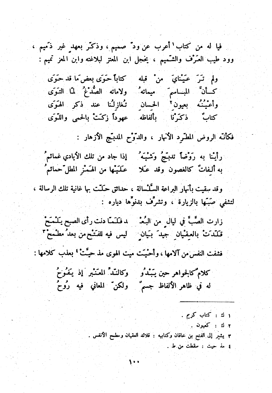فيا له من كتاب أعرب عن ود صميم، وذكر بعهد غير ذميم، وود طيب العرف والشميم، يخجل ابن المعتز لبلاغه وابن المعز تميم: