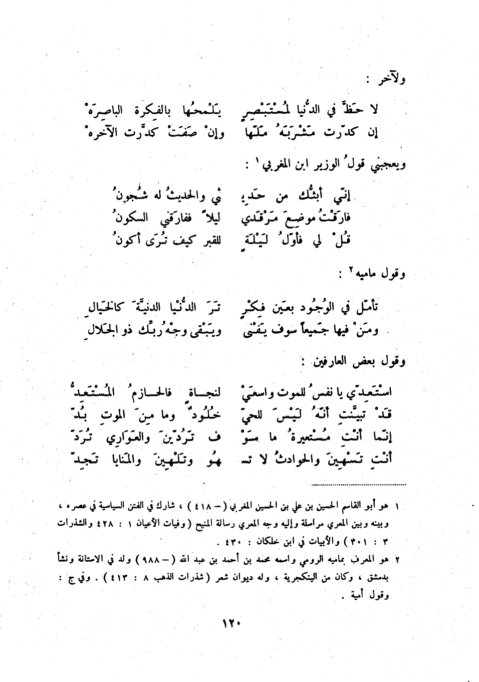 ويعجبني قول الوزير ابن المغربي: