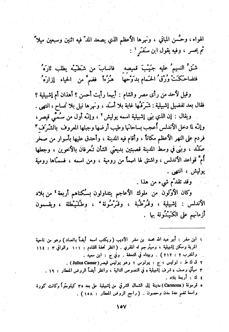 (1) ابن سفر: أبو عبد الله محمد بن سفر الأديب (ويكتب اسمه أيضاً بالصاد) وهو من ناحية المرية وسكن إشبيلية، وسيترجم له المقري. (انظر تحفة القادم: 101 والوافي 3: 114 والمغرب 2: 212) . وبيتاه في التحفة. وفي ج: ابن سعيد.