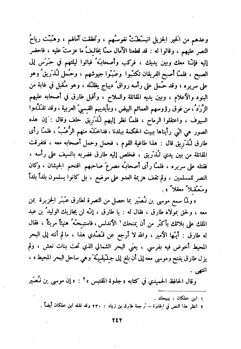 (2) انظر هذا النص في الجذوة - ترجمة طارق بن زياد: 230 وقد نقله ابن خلكان أيضاً.