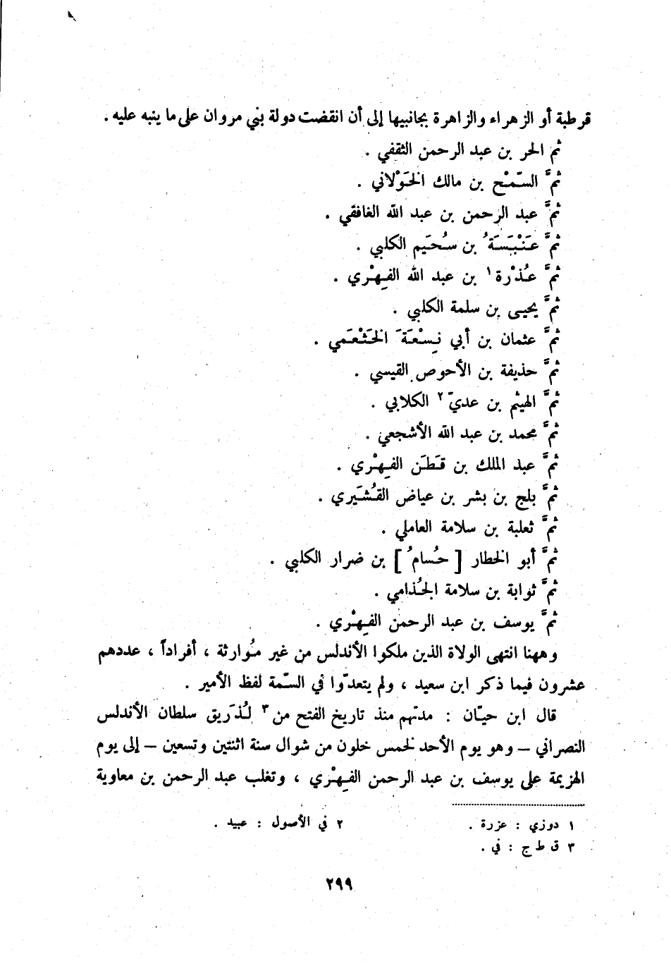 وهنا انتهى الولاة الذين ملكوا الأندلس من غير موارثة، أفراداً، عددهم عشرون فيما ذكر ابن سعيد، ولم يعتدّوا في السّمة لفظ الأمير.