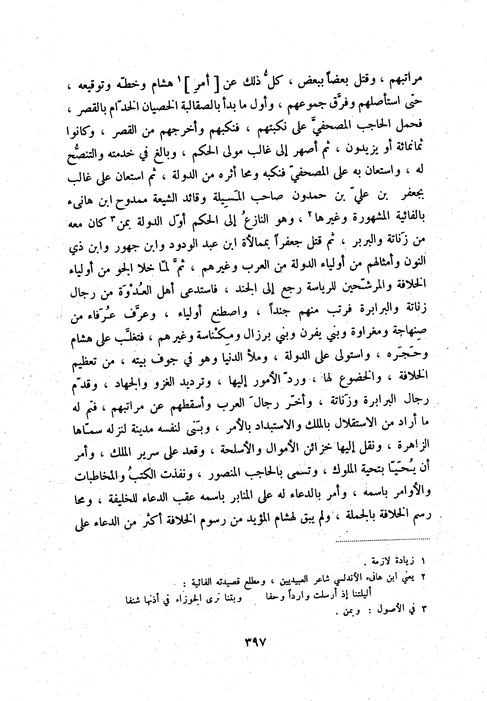 (2) يعني ابن هانئ الأندلسي شاعر العبيديين، ومطلع قصيدته الفائية: