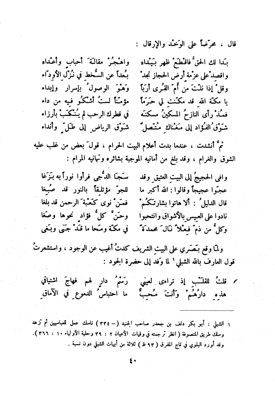 ثم أنشدت، عندما بدت أعلام البيت الحرام، قول بعض من غلب عليه الشوق والغرام، وقد بلغ من أمانيه الموجبة بشائره وتهانيه المرام: