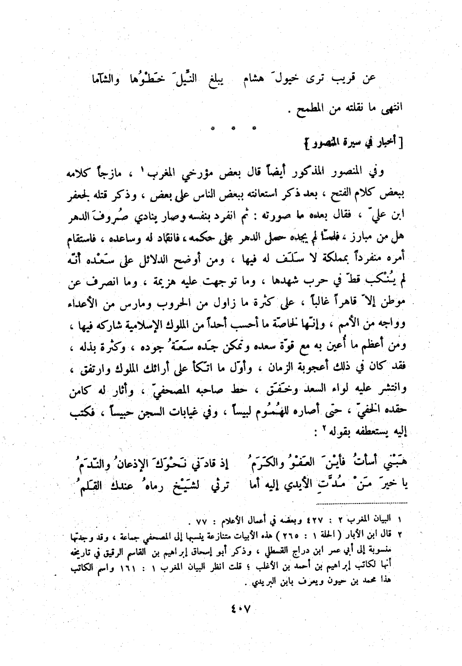 (1) البيان المغرب 2: 427 وبعضه في أعمال الأعلام: 77.