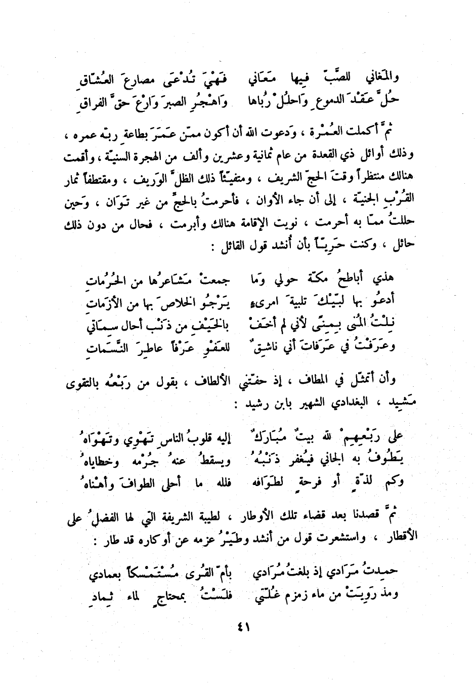 وأن أتمثل في المطاف، إذ حفتني الألطاف، بقول من ربعه بالتقوى مشيد، البغدادي الشهير بابن رشيد: