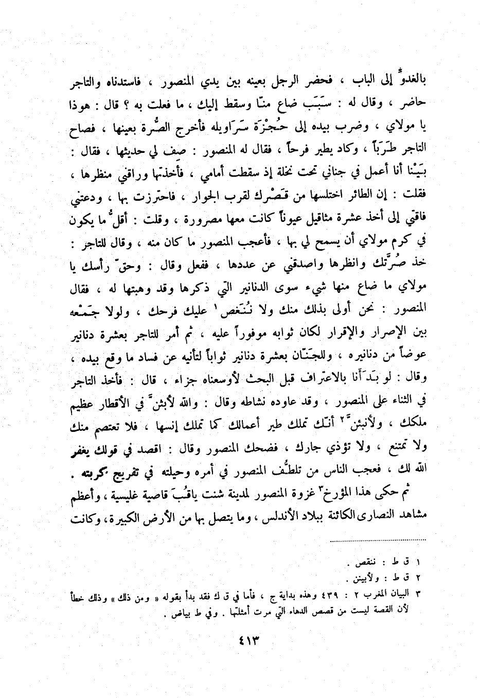 (3) البيان المغرب 2: 439 وهذه بداية ج، فأما في ق ك فقد بدأ بقوله " ومن ذلك " وذلك خطأ لأن القصة ليست من قصص الدهاء التي مرت أمثلتها. وفي ط بياض.