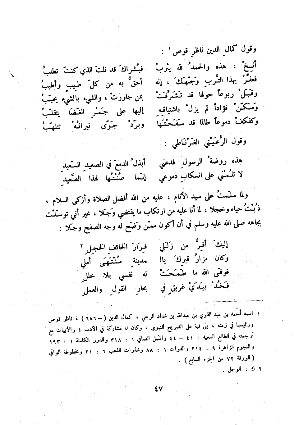 ولما سلمت على سيد الأنام، عليه من الله أفضل الصلاة وأزكى السلام، ذبت حياء وخجلا، لما أنا عليه من ارتكاب ما يقتضي وجلا، غير أني توسلت بجاهه صلى الله عليه وسلم في أن أكون ممن وضح له وجه الصفح وجلا: