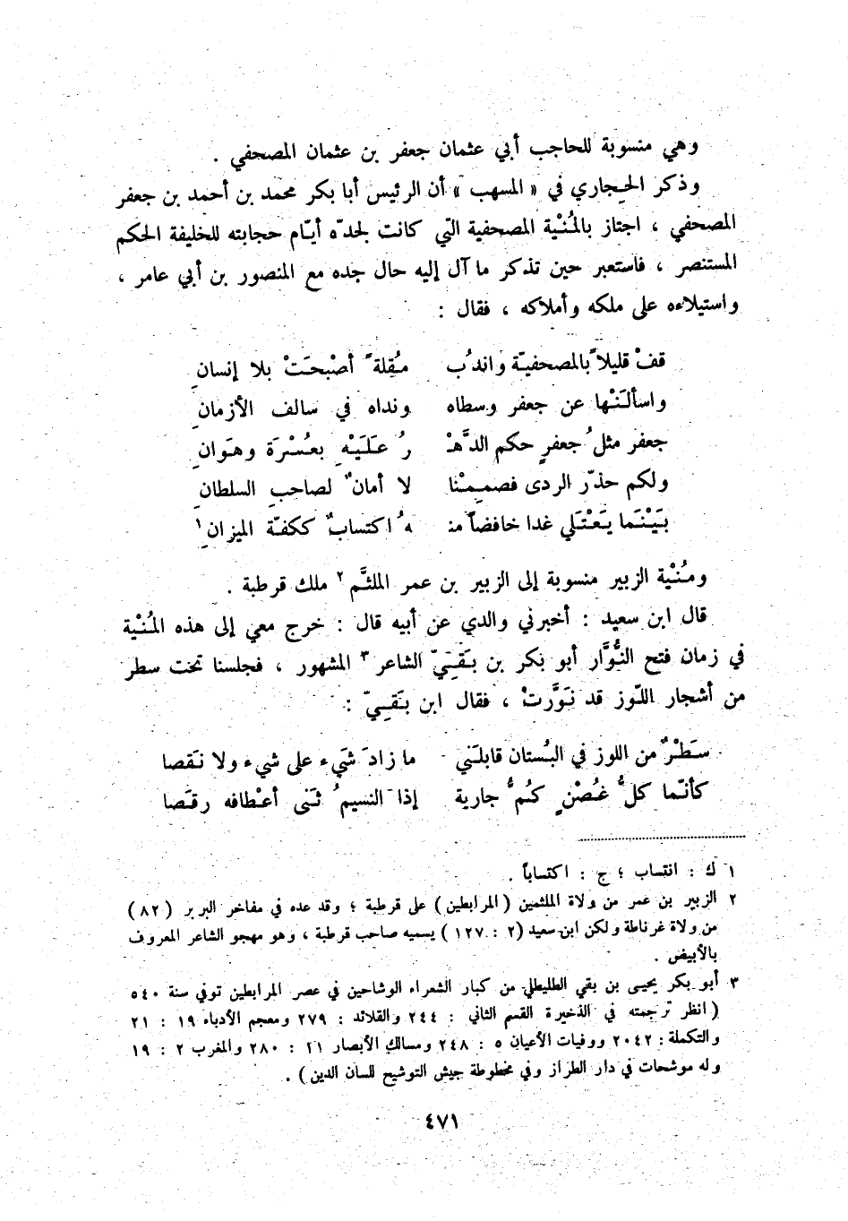 بينما يعتلي غدا خافضاً من ... هـ اكتسابٌ ككفّة الميزان (1) ومنية الزبير منسوبة إلى الزبير بن عمر الملثّم (2) ملك قرطبة.