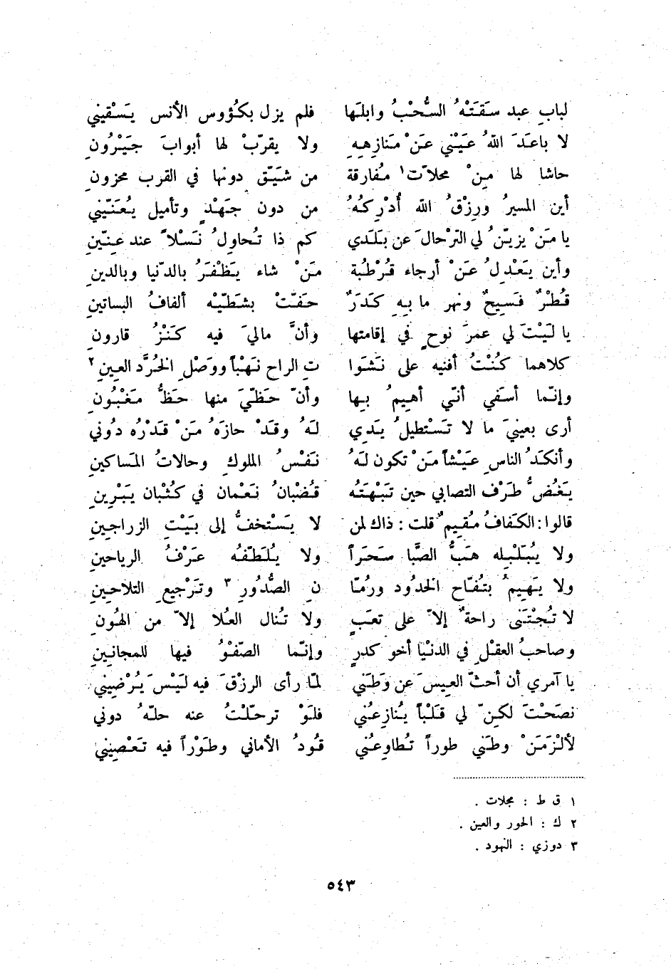 كلاهما كنت أفنيه على نشوا ... ت الراح نهباً ووصل الخرّد العين (2)