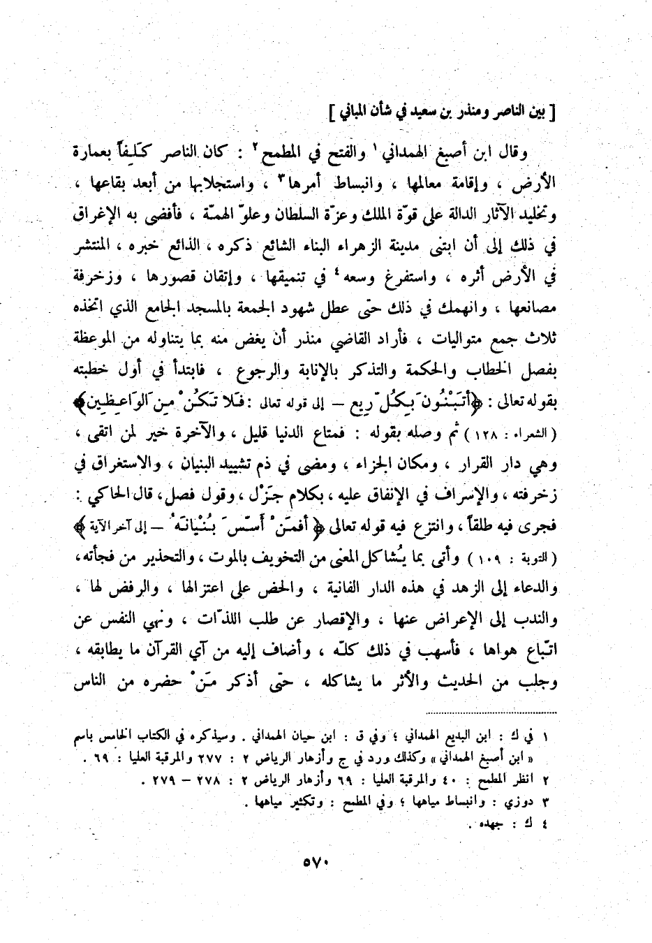 [بين الناصر ومنذر بن سعيد في شأن المباني]
