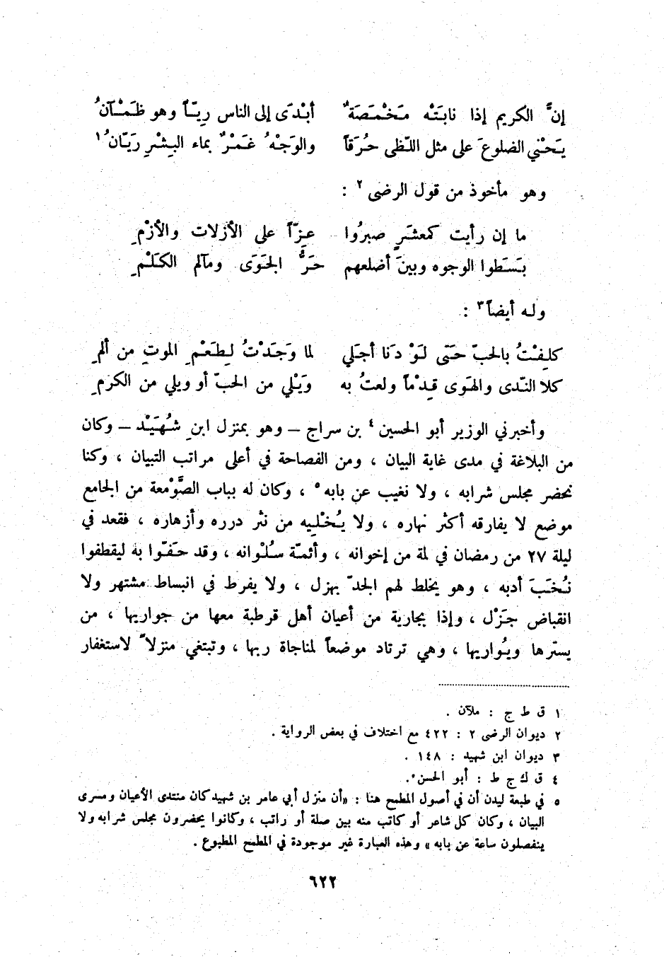 (2) ديوان الرضى 2: 422 مع اختلاف في بعض الرواية.