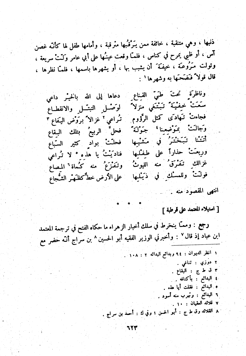 رجع: وممّا ينخرط في سلك أخبار الزهراء ما حكاه الفتح في ترجمة المعتمد ابن عباد إذ قال (7) : وأخبرني الوزير الفقيه أبو الحسين (8) بن سراج أنّه حضر مع