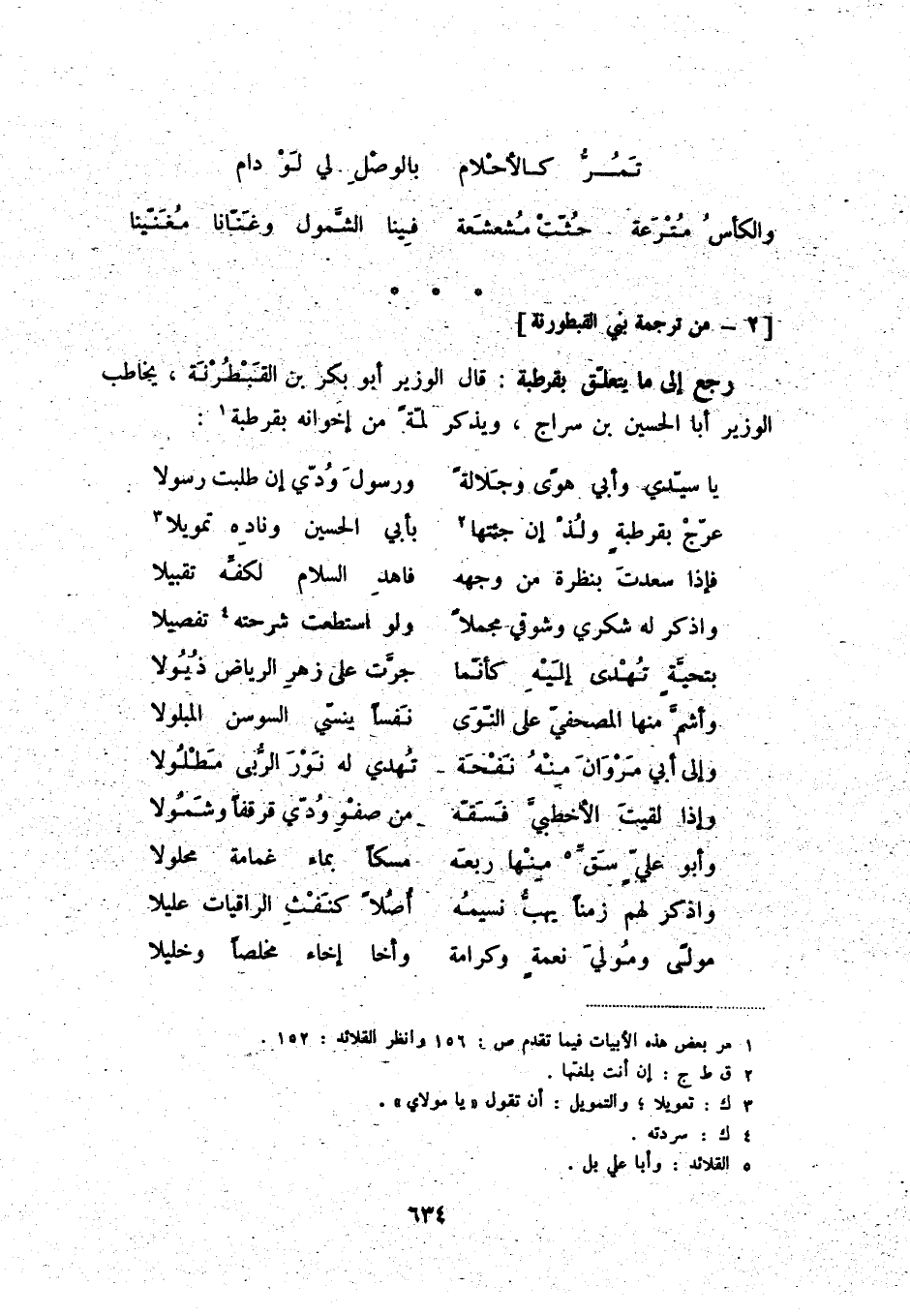 رجع إلى ما يتعلّق بقرطبة: قال الوزير أبو بكر بن القبطرنة، يخاطب الوزير أبا الحسين ين سراج، ويذكر لمّةً من إخوانه بقرطبة (1) :