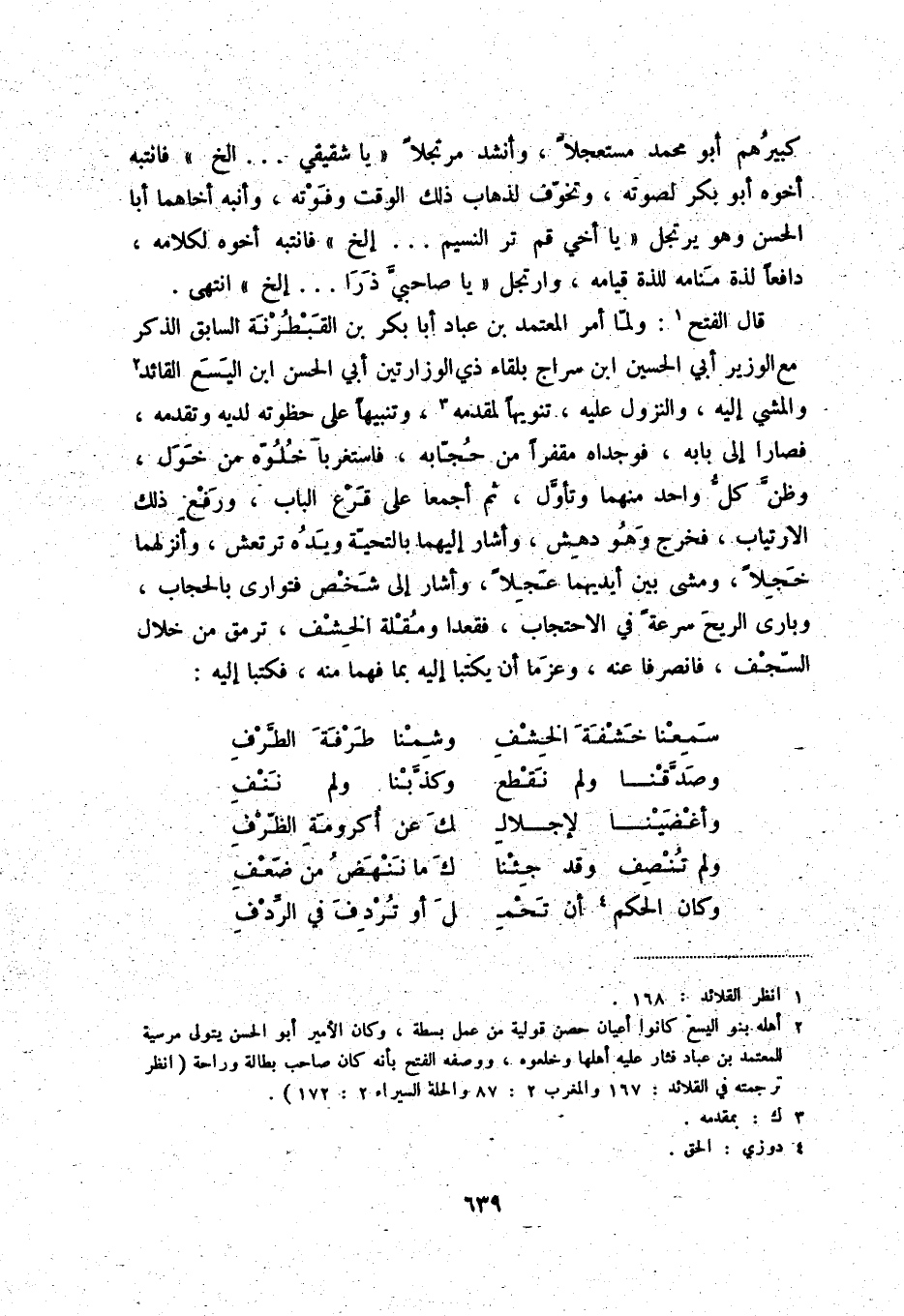 (2) أهله بنو اليسع كانوا أعيان حصن قولية من عمل بسطة، وكان الأمير أبو الحسن يتوى مرسية للمعتمد بن عباد فثار عليه أهلها وخلعوه، ووصفه الفتح بأنه كان صاحب بطالة وراحة (انظر ترجمته في القلائد: 167 والمغرب 2: 87 والحلة السيراء 2: 172) .