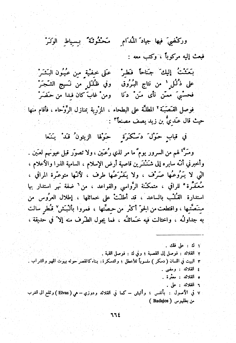 (3) البيت في اللسان (دسكر) منسوباص للأخطل؛ والدسكرة: بناء كالقصر حوله بيوت اللهو والشراب.