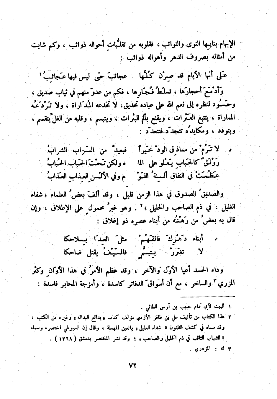وداء الحسد أعيا الأول والآخر، وقد عظم الأمر في هذا الأوان وكثر المزري والساخر، مع أن أسواق الدفاتر كاسدة، وأمزجة المحابر فاسدة: