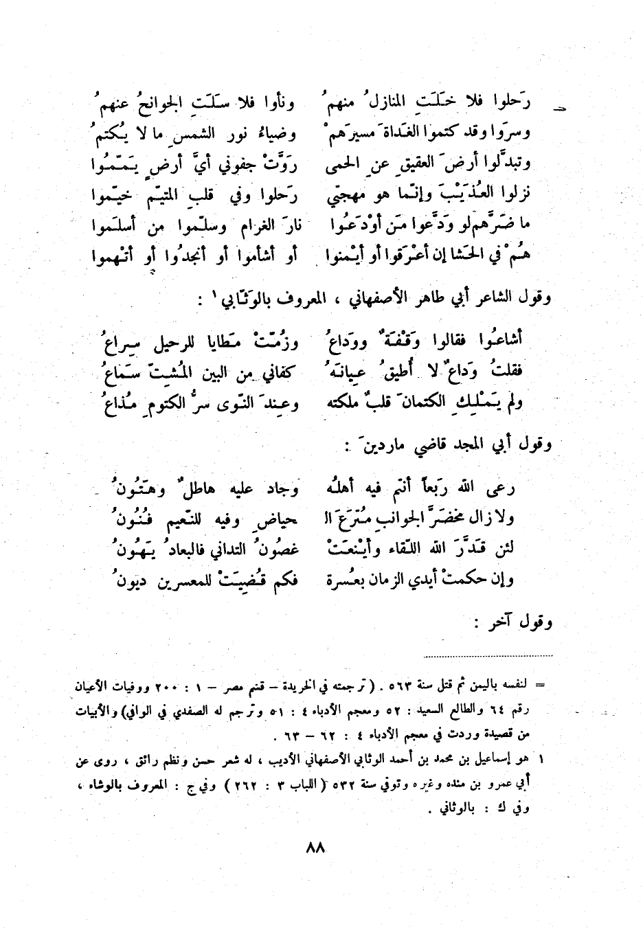 وقول الشاعر أبي طاهر الأصفهاني، المعروف بالوثابي: