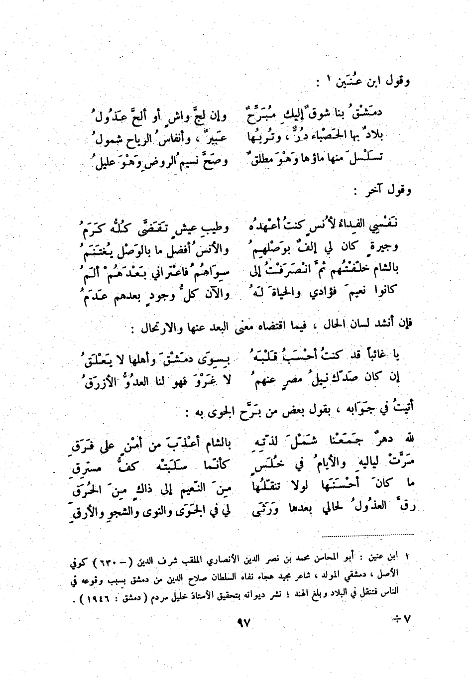 يا غائبا قد كنت أحسب قلبه بسوى دمشق وأهلها لا يعلق