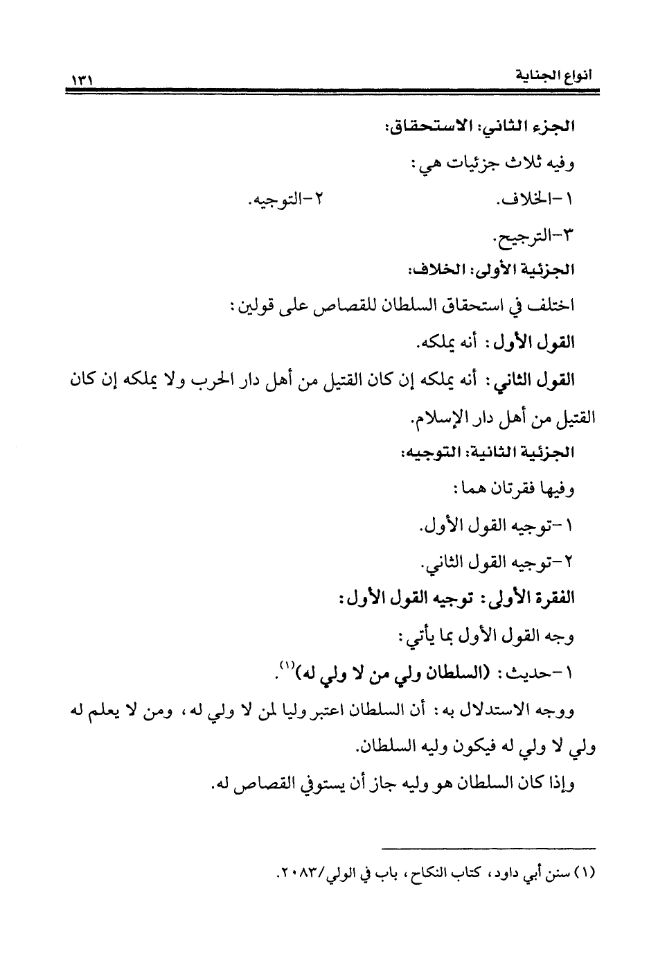 اختلف في استحقاق السلطان للقصاص على قولين: