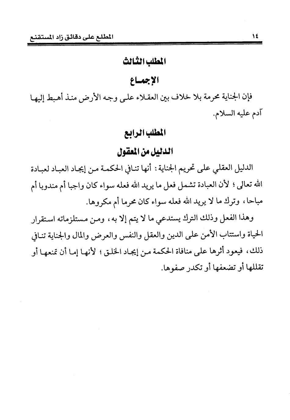 كتاب المطلع على دقائق زاد المستقنع «فقه الجنايات والحدود» (اسم الجزء: 1)