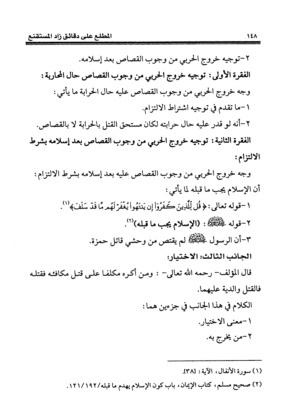 كتاب المطلع على دقائق زاد المستقنع «فقه الجنايات والحدود» (اسم الجزء: 1)