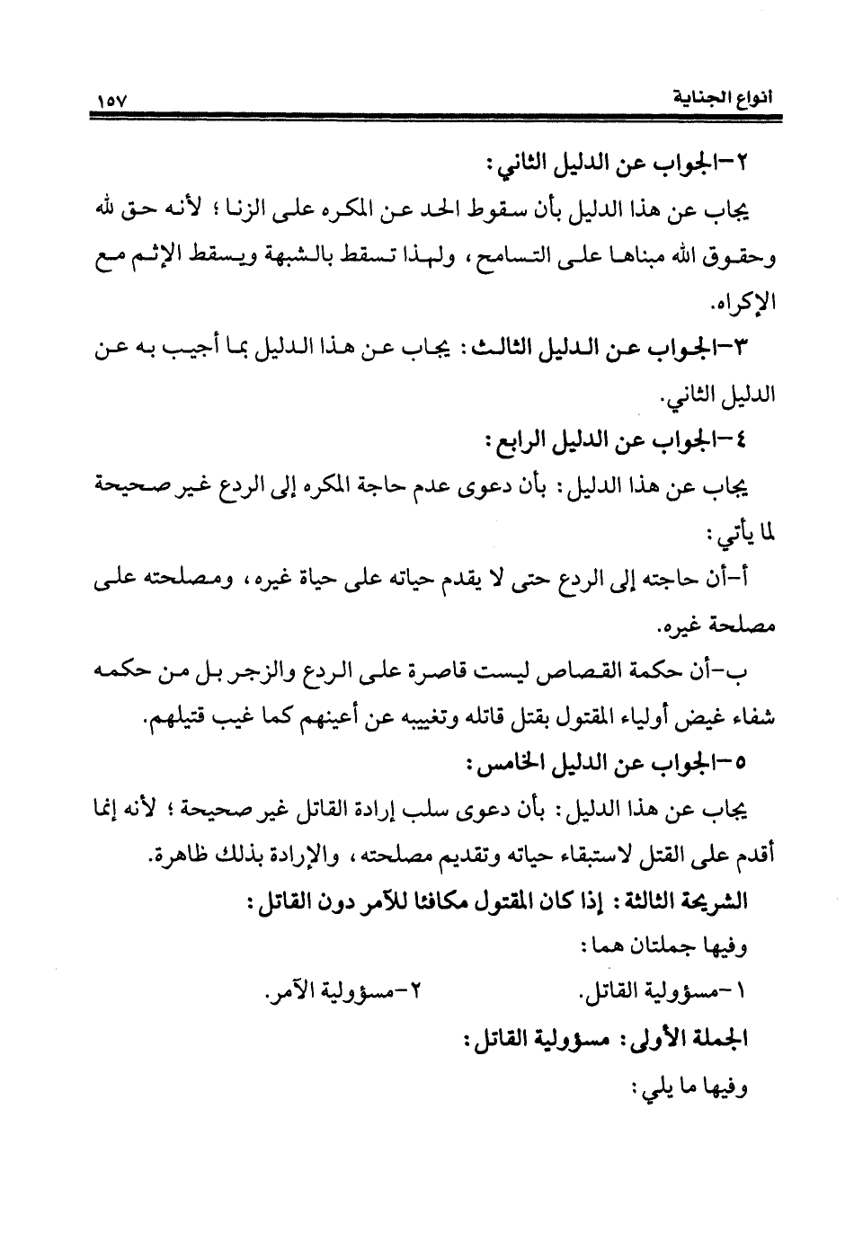 يجاب عن هذا الدليل: بأن دعوى سلب إرادة القاتل غير صحيحة؛ لأنه إنما أقدم على القتل لاستبقاء حياته وتقديم مصلحته، والإرادة بذلك ظاهرة.