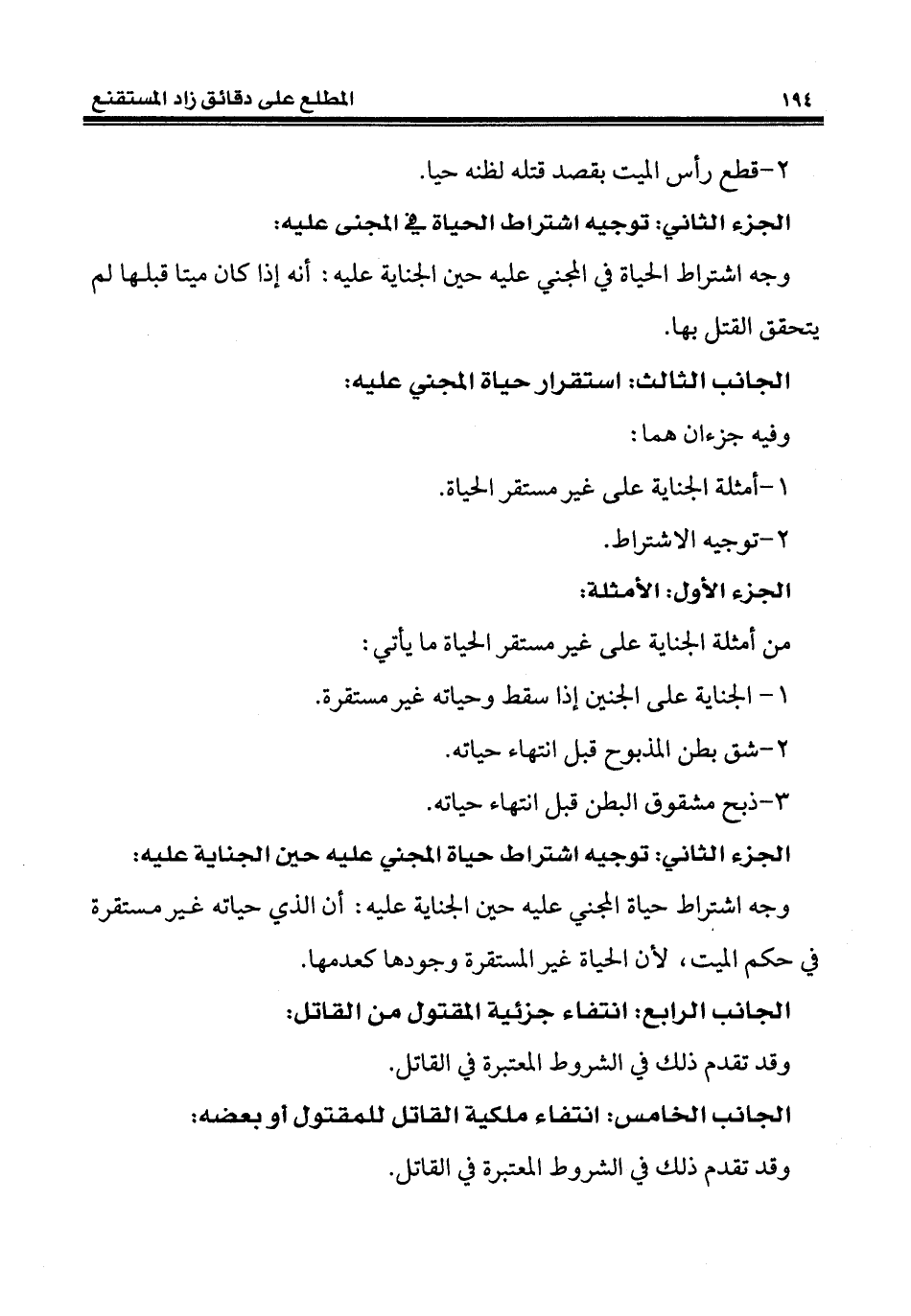 كتاب المطلع على دقائق زاد المستقنع «فقه الجنايات والحدود» (اسم الجزء: 1)