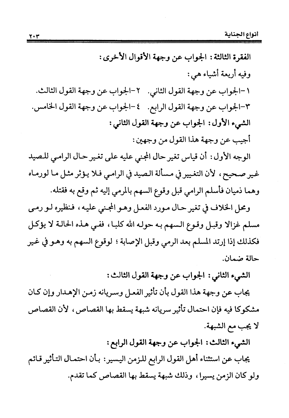 الوجه الأول: أن قياس تغير حال المجني عليه على تغير حال الرامي للصيد غير صحيح؛ لأن التغيير في مسألة الصيد في الرامي فلا يؤثر مثل ما لو رماه وهما ذميان فأسلم الرامي قبل وقوع السهم بالمرمي إليه ثم وقع به فقتله.