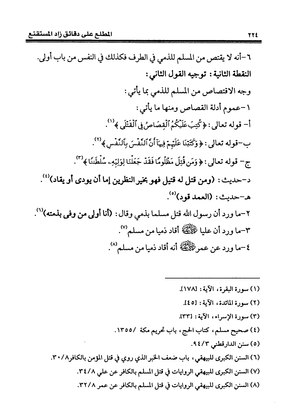 (¬6) السنن الكبرى للبيهقي، باب ضعف الخبر الذي روي في قتل المؤمن بالكافر 8/ 30.