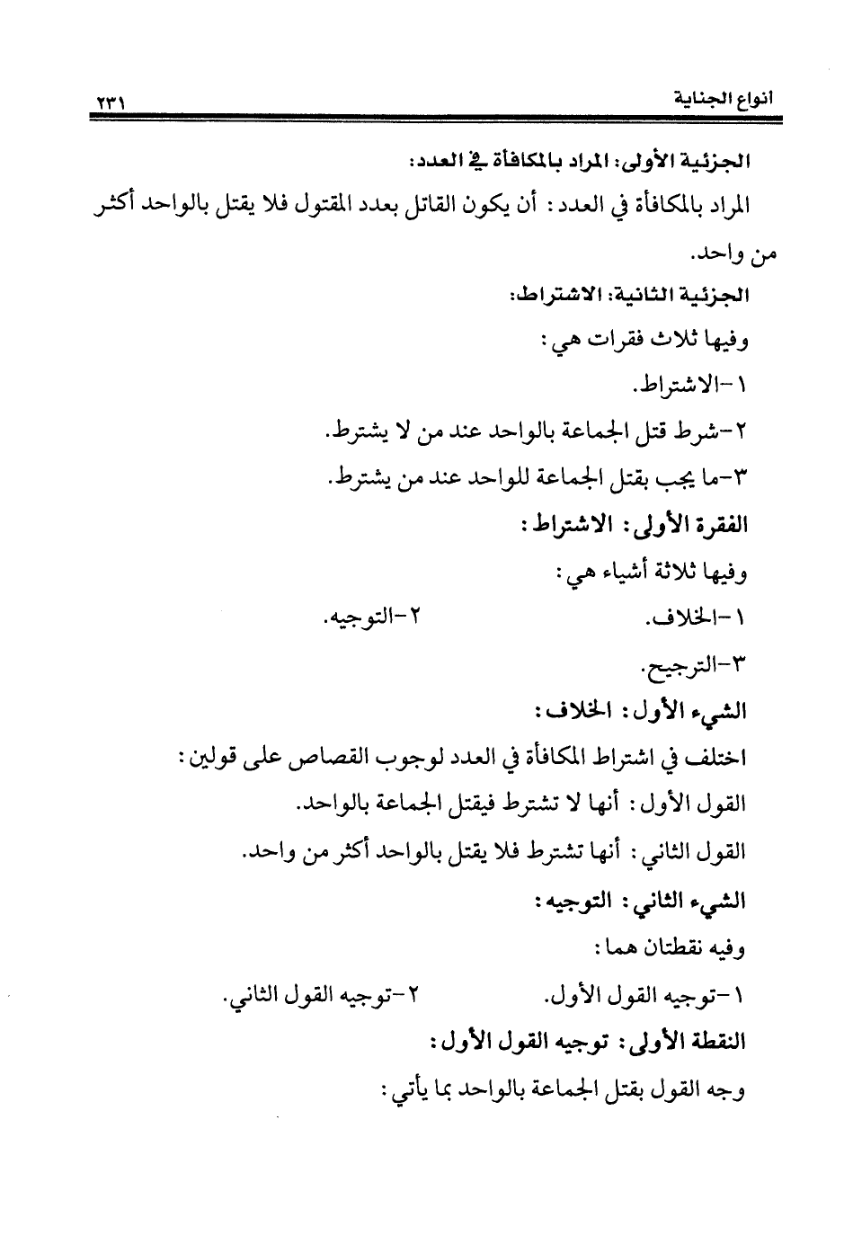 المراد بالمكافأة في العدد: أن يكون القاتل بعدد المقتول فلا يقتل بالواحد أكثر واحد.