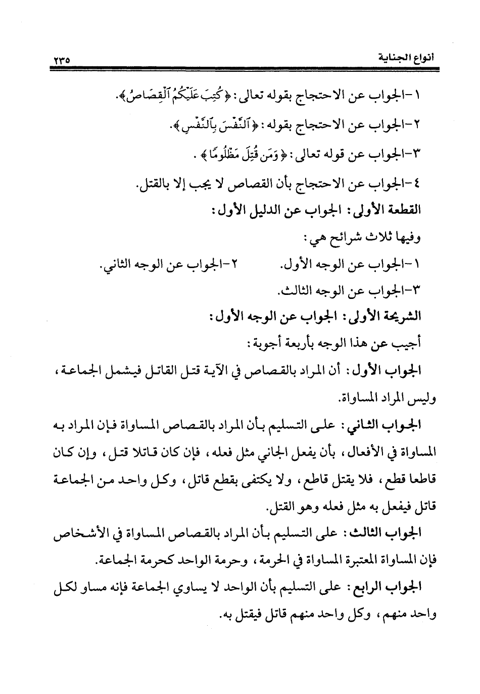 1 - الجواب عن الاحتجاج بقوله تعالى: {كُتِبَ عَلَيْكُمُ الْقِصَاصُ}.