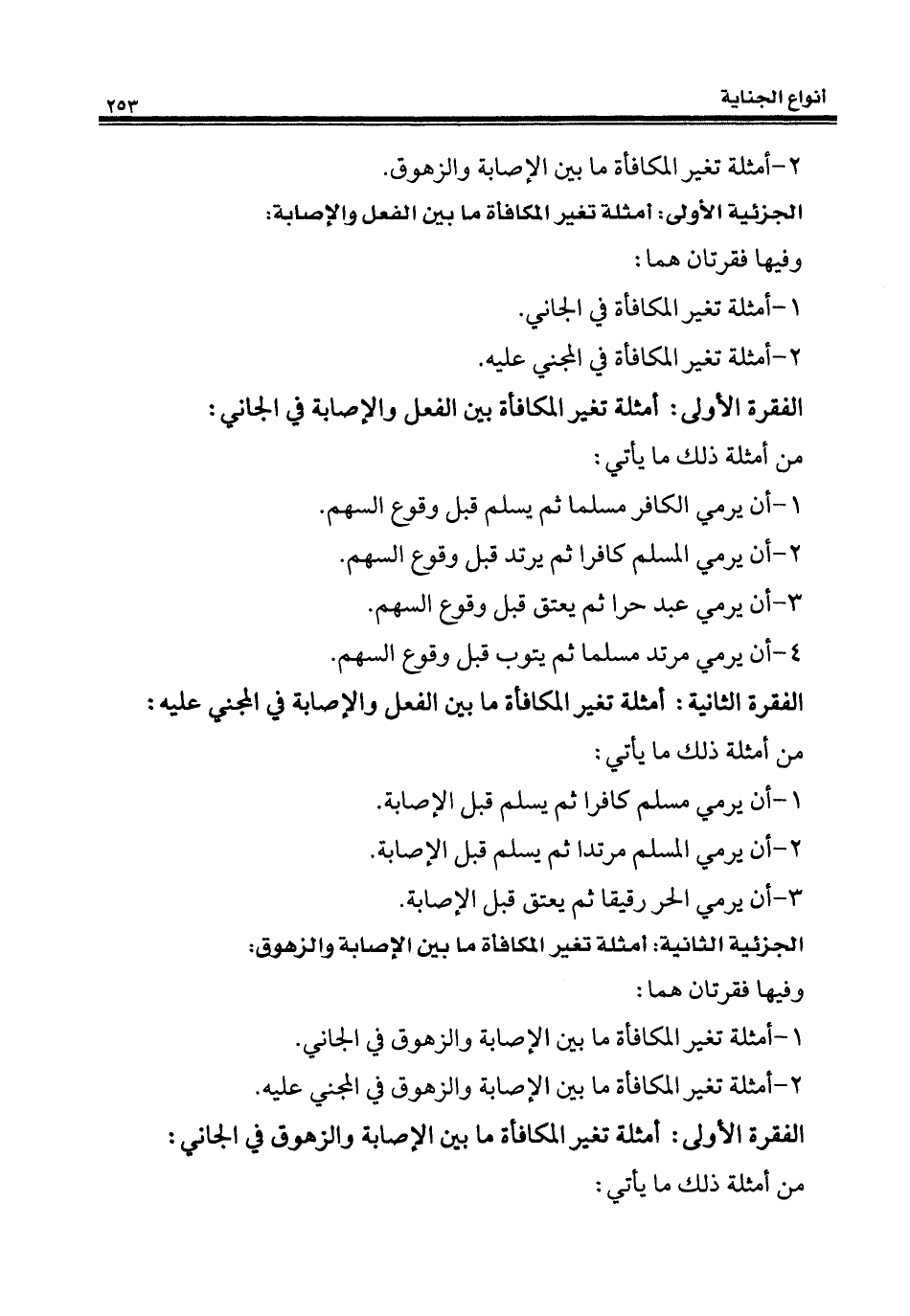 1 - أمثلة تغير المكافأة ما بين الإصابة والزهوق في الجاني.
